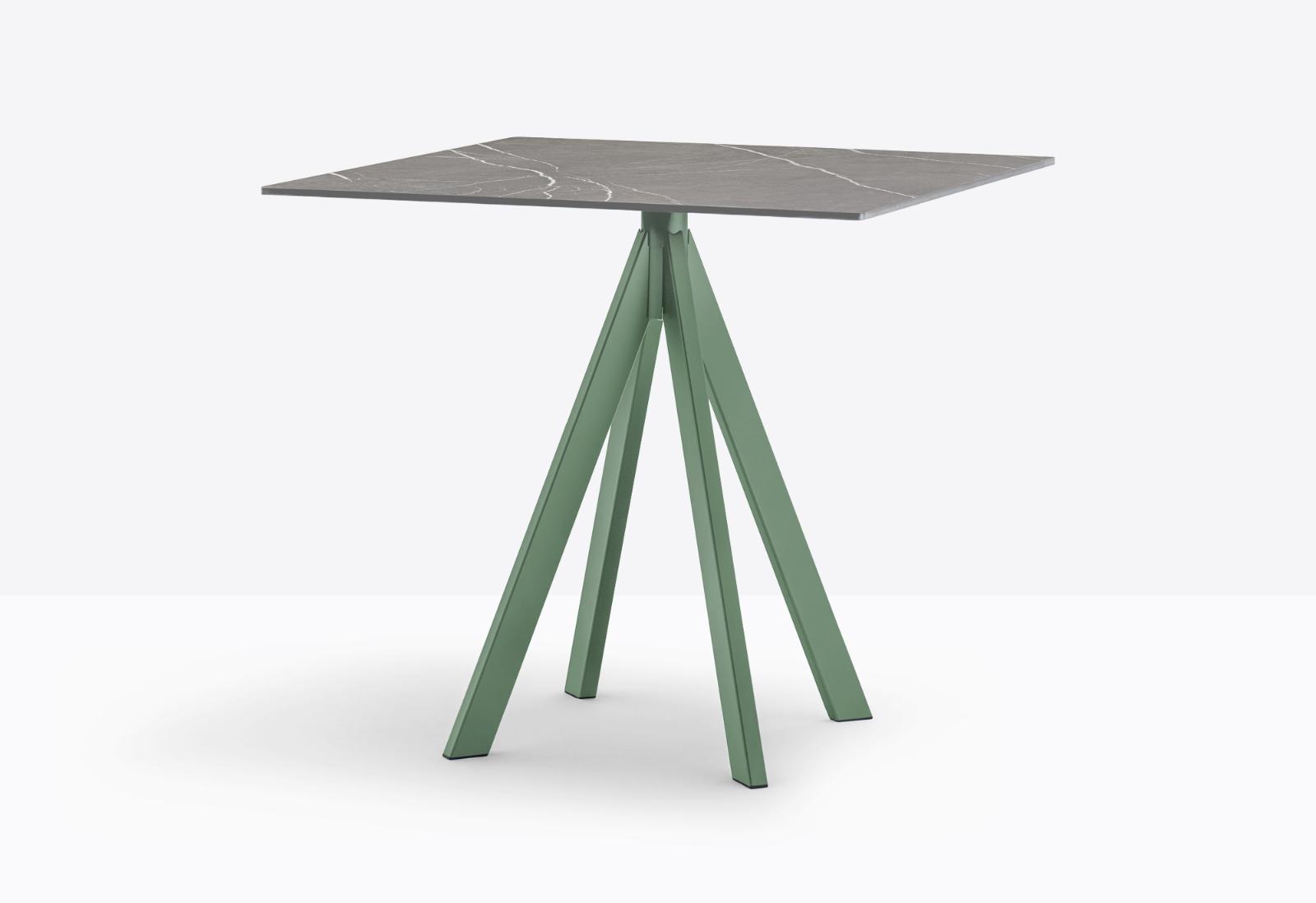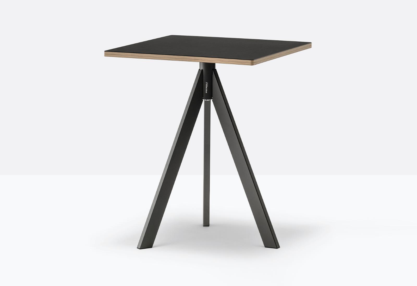 שולחן קפיטריה עגול/מרובע מבית המותג Pedrali, מתאים לאזורי הסעדה, מרחבים משותפים ולאזורי חוץ. לשולחן רגלי עץ אלון ומשטח ממתכת במגוון צבעים וגדלים, כולל גובה בר.
