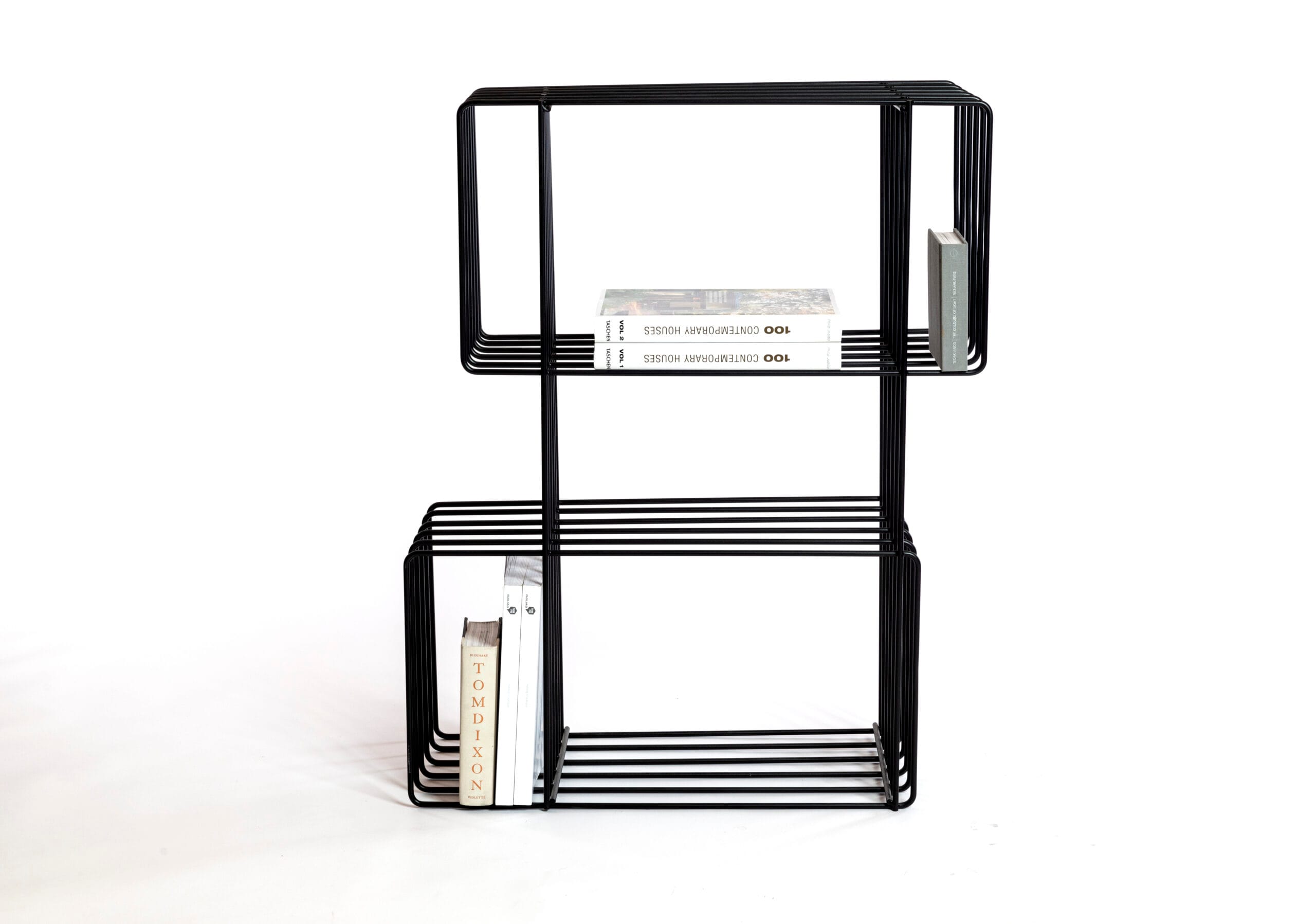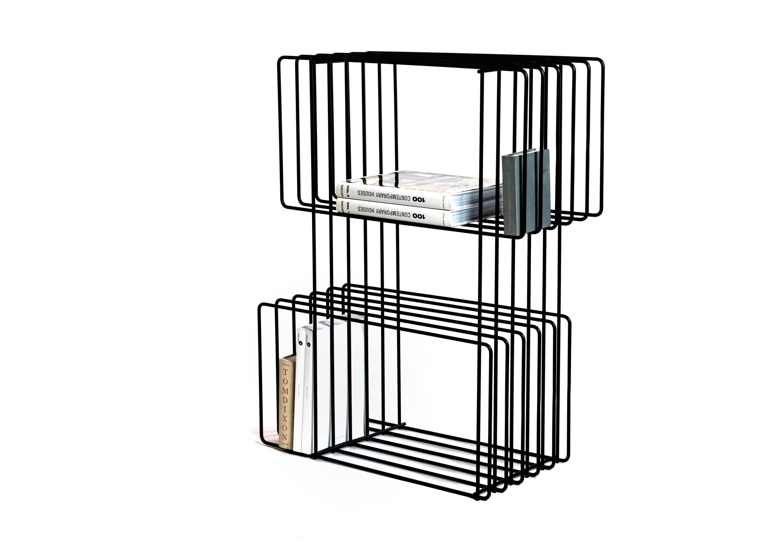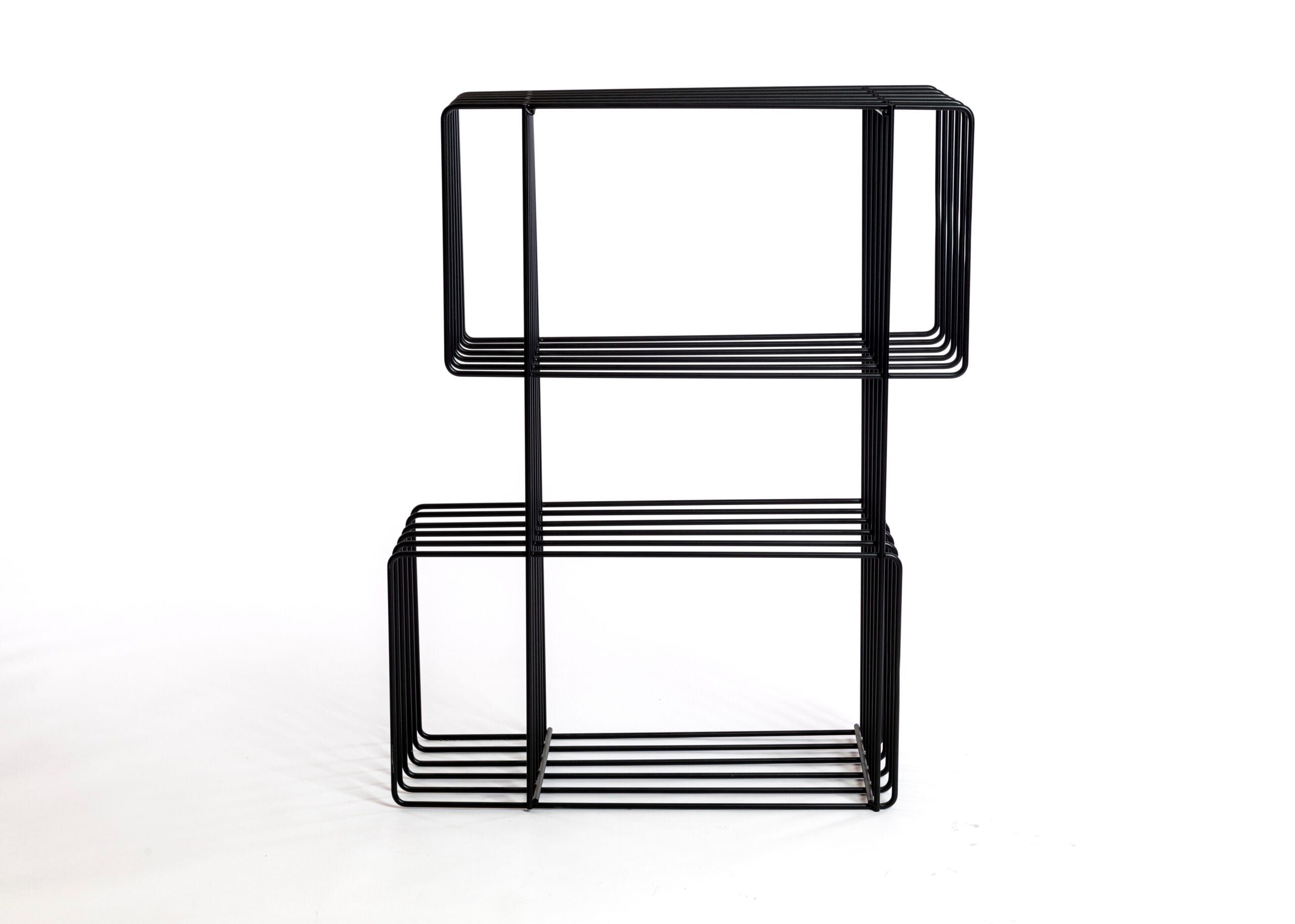 יחידת מדפים מבית המותג B&T, מתאימה לסביבות משרדיות ומרחבים משותפים. ליחידה עיצוב ייחודי ופיסולי המורכב ממוטות מתכת המחוברים ביניהם לאורך ולרוחב. היחידה מוצעת בשתי וריאציות: קטנה המורכבת משני חלקי אחסון או גדולה בעלת ארבעה חלקי אחסון. זמין בשחור.