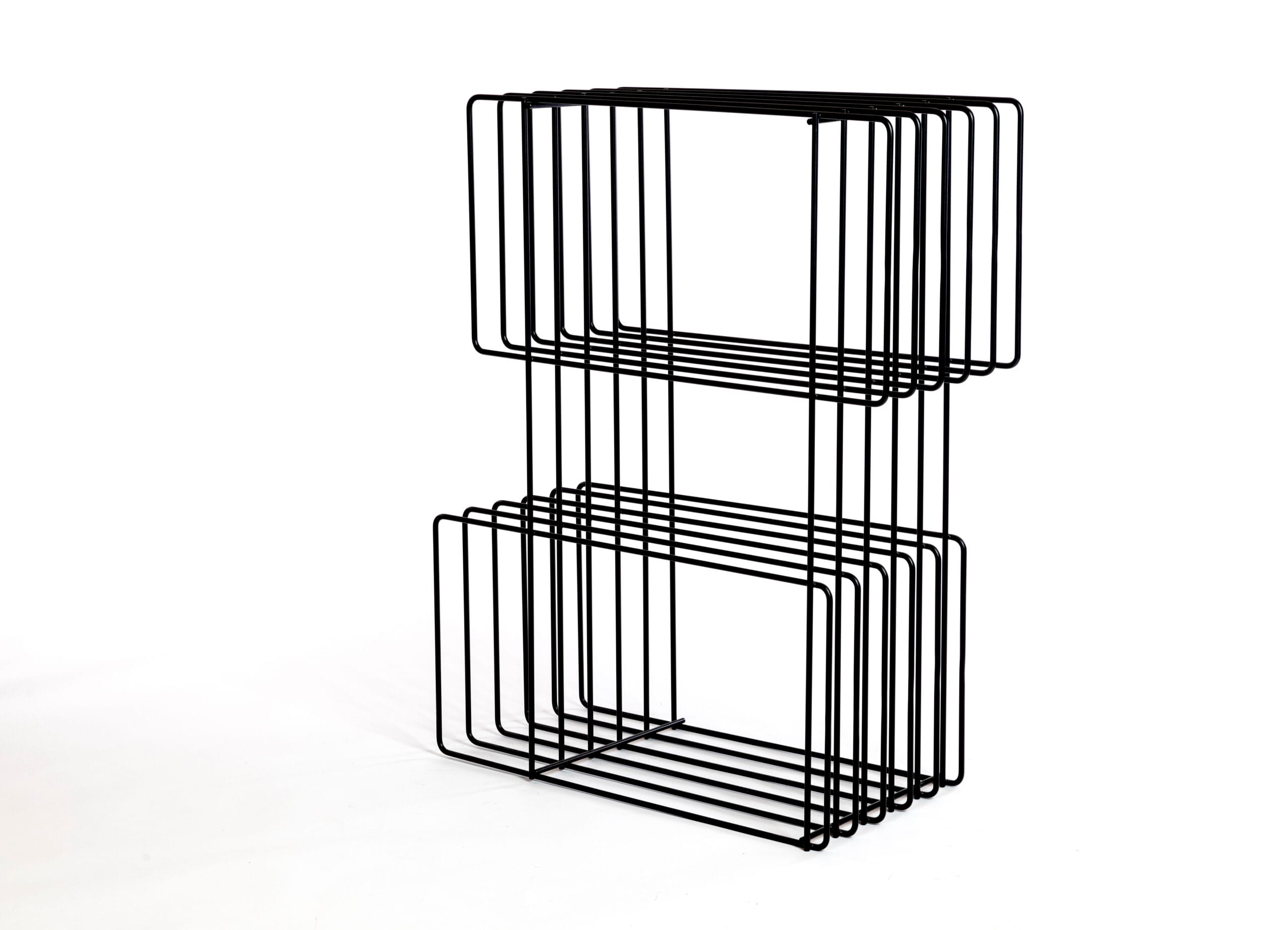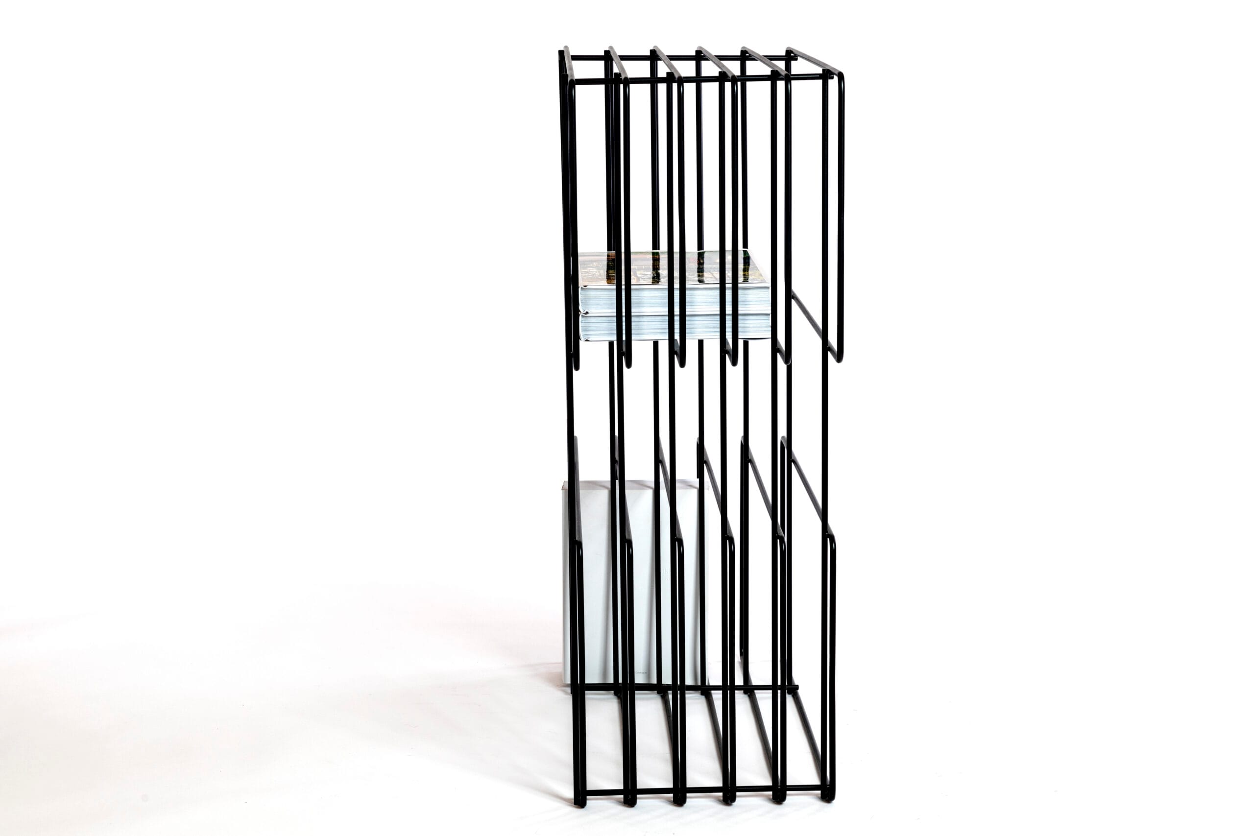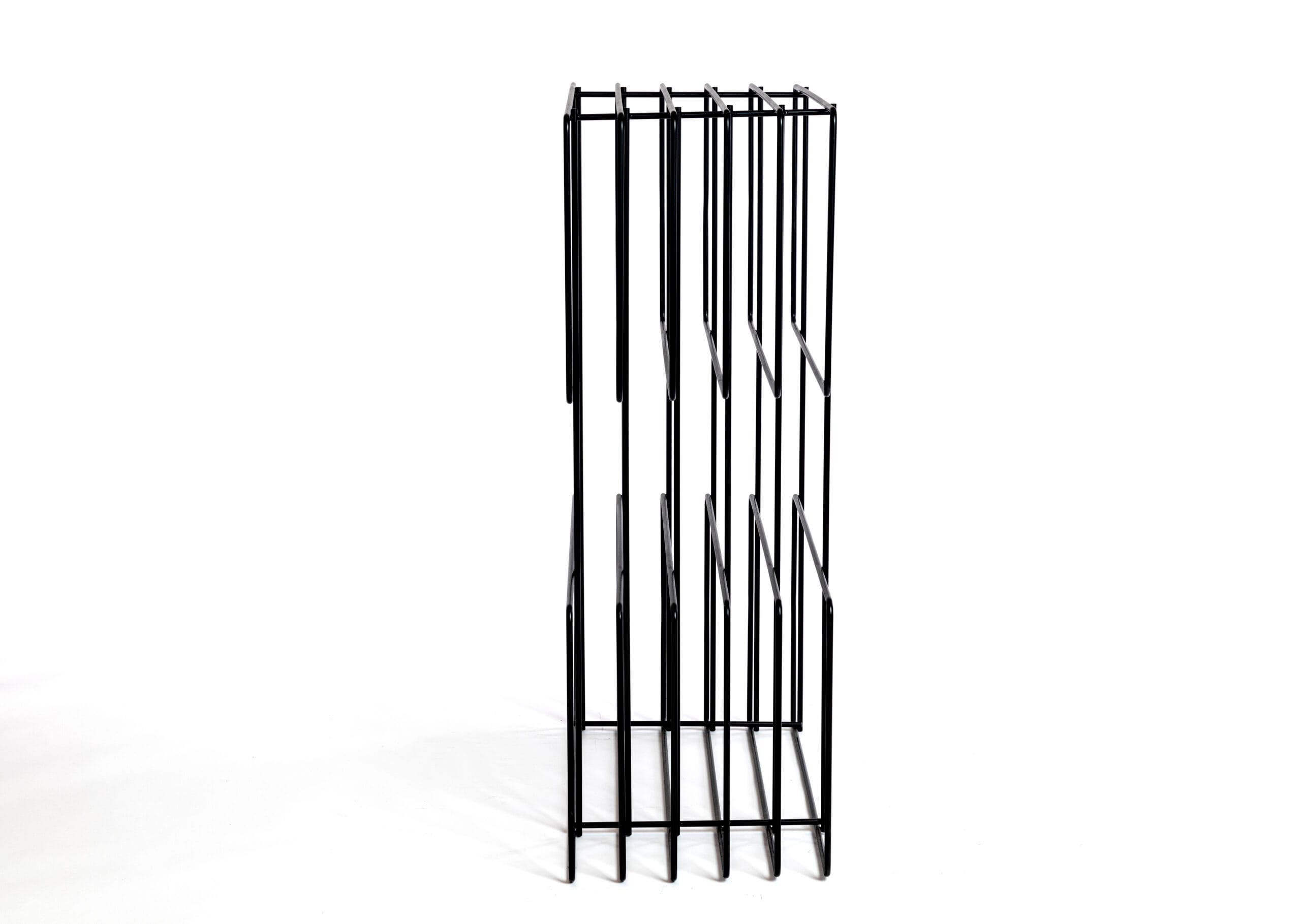יחידת מדפים מבית המותג B&T, מתאימה לסביבות משרדיות ומרחבים משותפים. ליחידה עיצוב ייחודי ופיסולי המורכב ממוטות מתכת המחוברים ביניהם לאורך ולרוחב. היחידה מוצעת בשתי וריאציות: קטנה המורכבת משני חלקי אחסון או גדולה בעלת ארבעה חלקי אחסון. זמין בשחור.