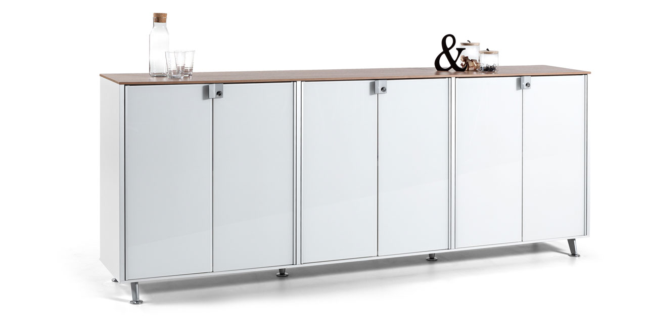 יחידת אחסון מודולרית מבית המותג Actiu, אידיאלית למרחבים משותפים. היחידה עשויה ממבחר סוגי עץ בגוונים שונים. שלל אפשרויות להרכבה, עם תאים פתוחים או סגורים. אופציה להוסיף פלטת זכוכית למראה יוקרתי.