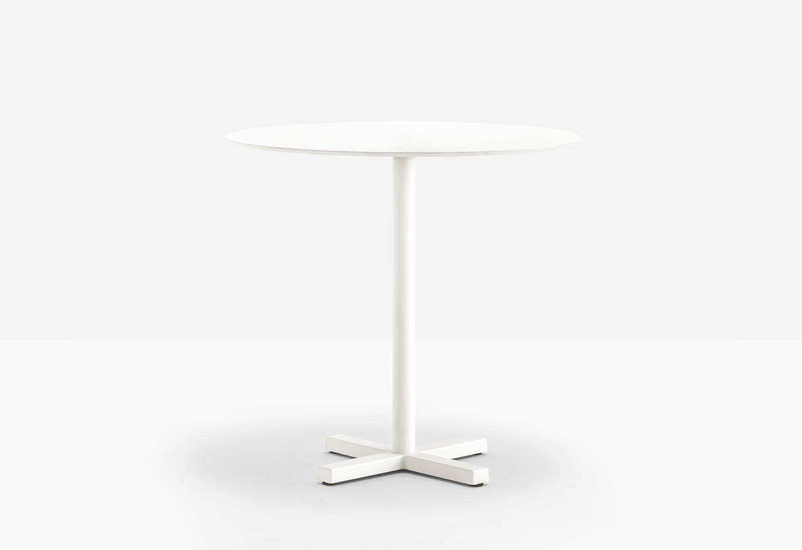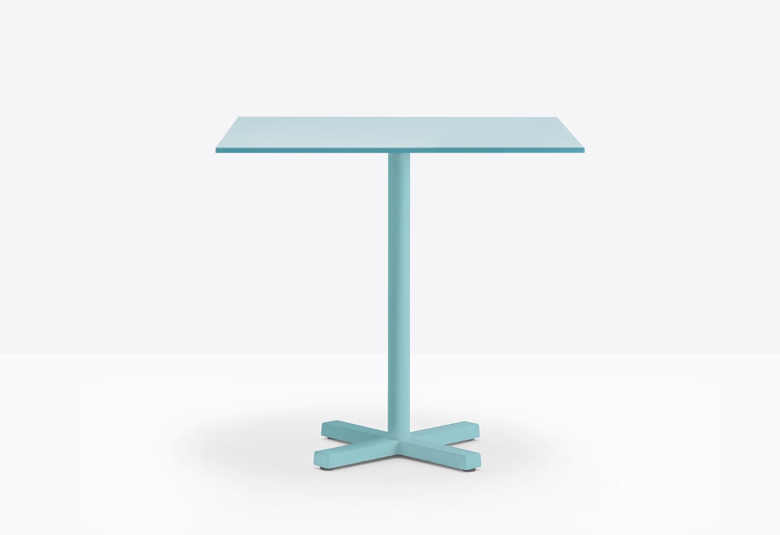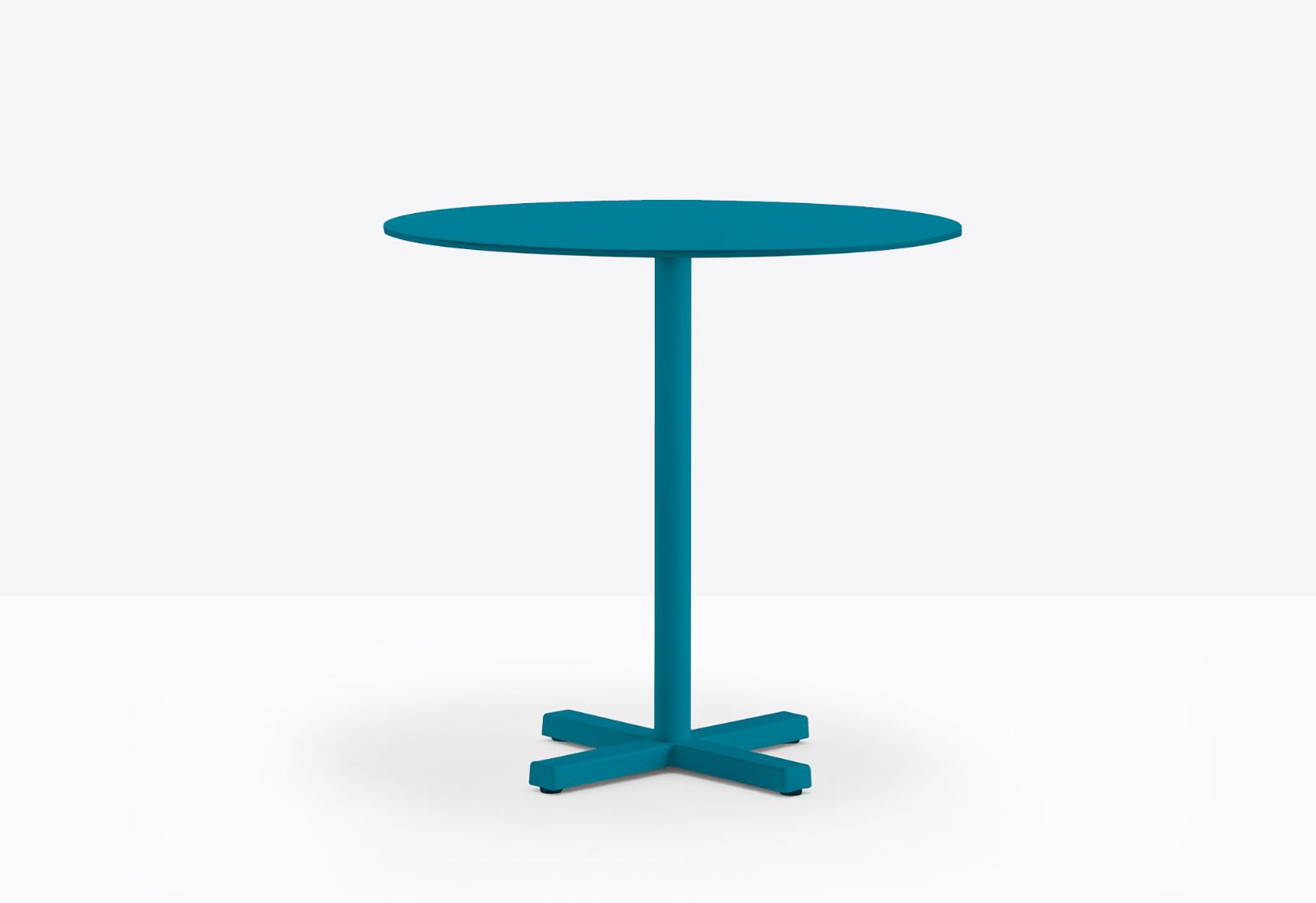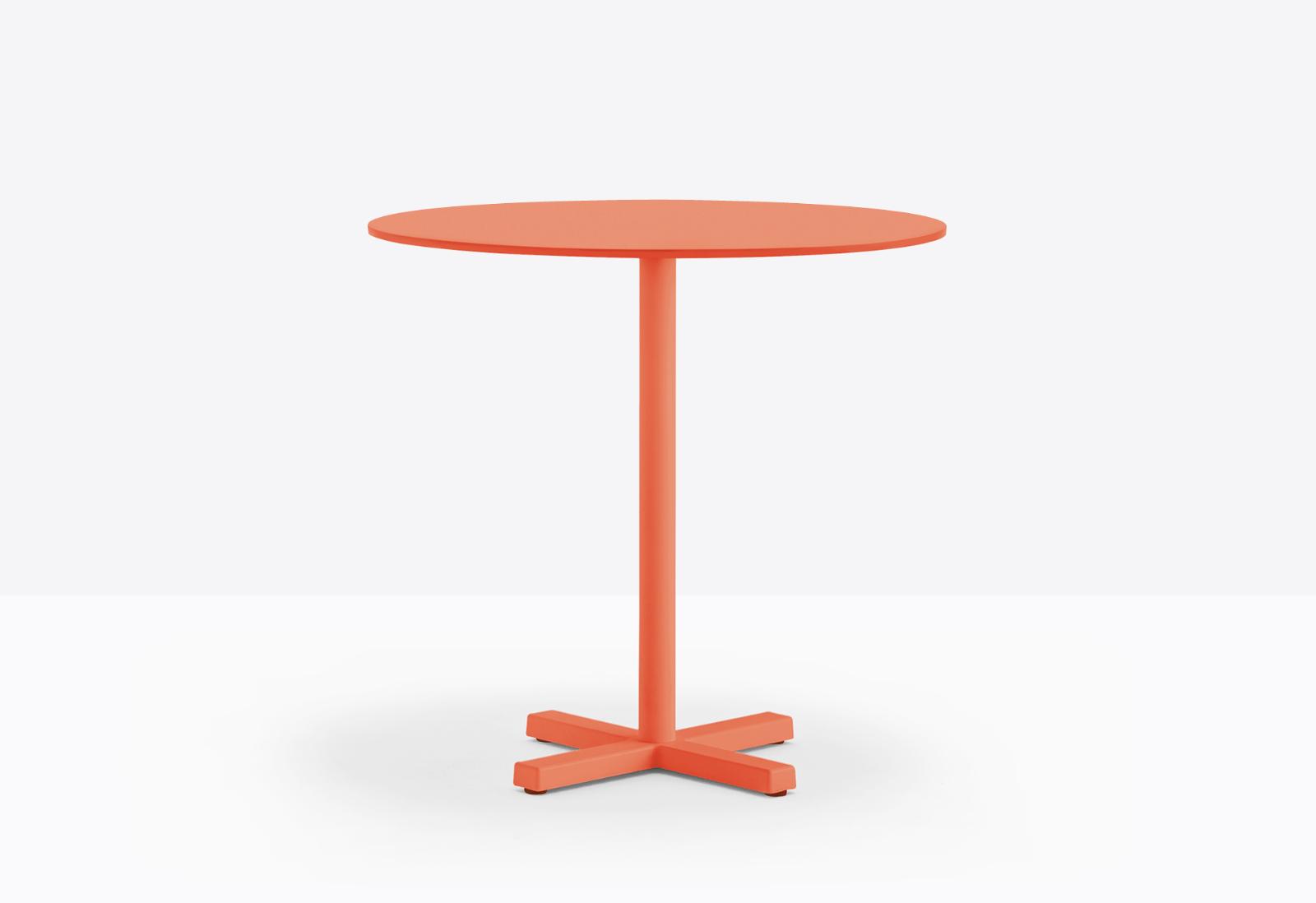 שולחן קפיטריה מבית המותג pedrali, מתאים לאזורי הסעדה, מרחבים משותפים ולאזורים חיצוניים. עיצוב השולחן מתאפיין בקו נקי ומינימליסטי לצד נוכחות גרפית ברורה. לשולחן בסיס צלב שעשוי מברזל יצוק ועמוד פלדה. הפלטה העליונה זמינה בצורות ובגימורים משתנים. הסדרה כוללת שולחן הסעדה ושולחן בר.