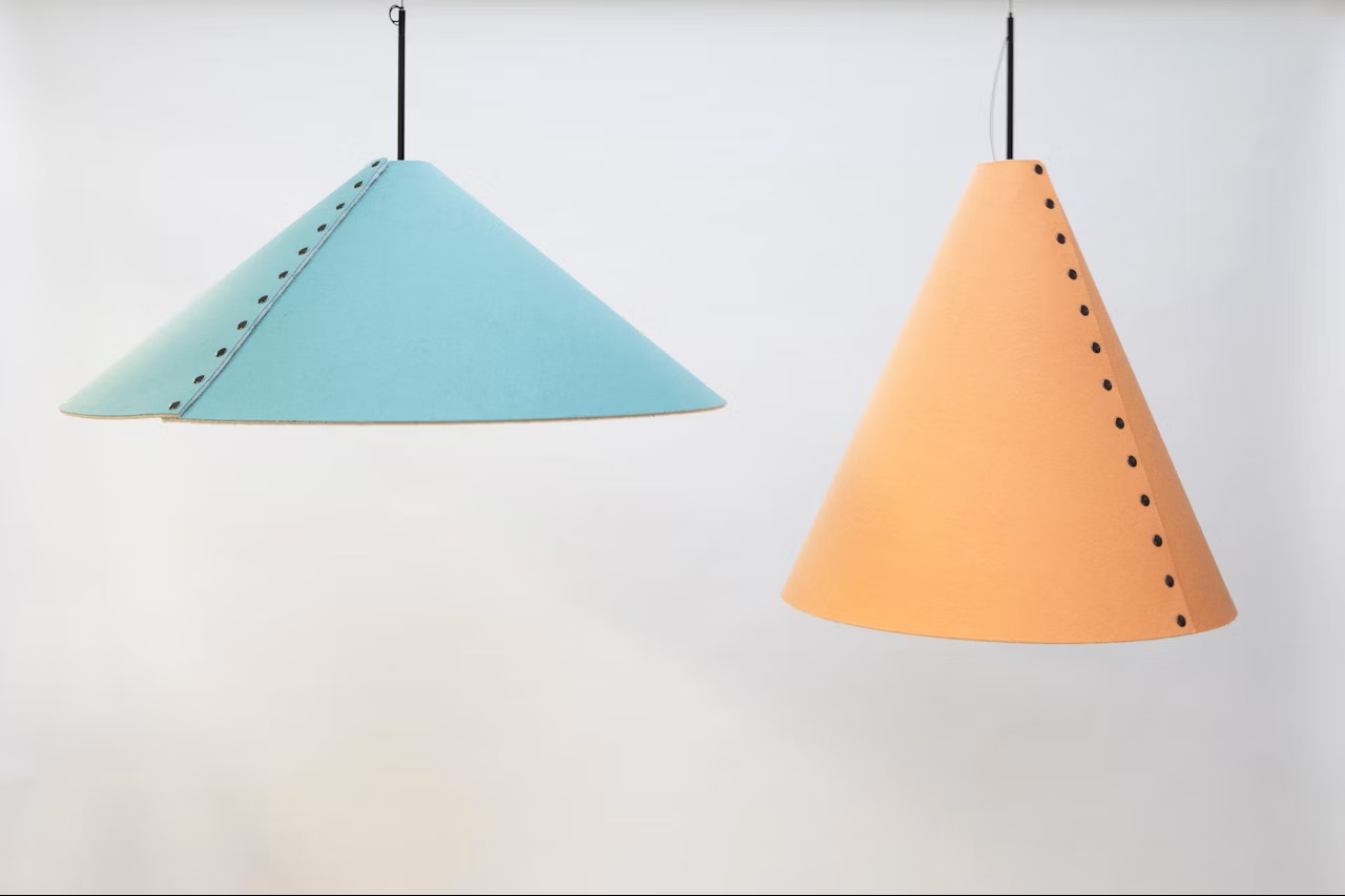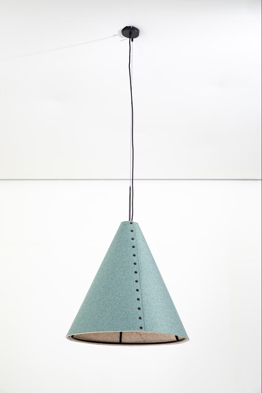 מנורת תלייה אקוסטית בצורת קונוס, מבית המותג BuzziSpace. מתאימה למרחבים משותפים ואזורי לאונג'. הפריט עשוי מלבד שמפחית ומבודד רעשים. זמין בשלושה דגמים שניתן לשלב במגוון צבעים לבחירה.