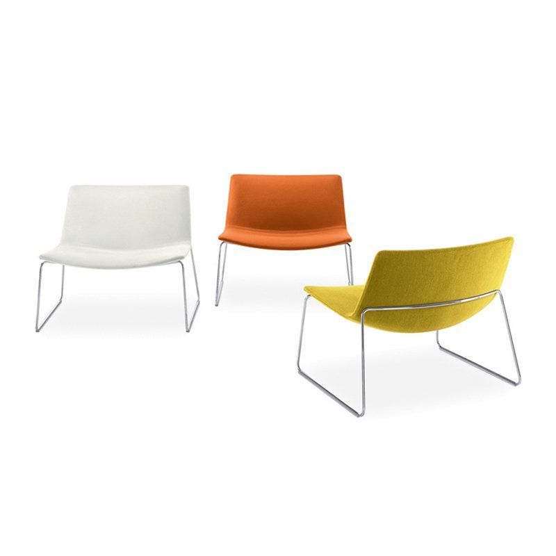כורסת לאונג' מבית המותג Arper, מתאימה לסביבות אירוח, אזורי לאונג' ולובאים. לכורסה בסיס ממתכת במגוון צורות. ניתן לחבר שולחן כתיבה לעבודה מזדמנת. זמינה במבחר בדים בטקסטורות שונות בשלל צבעים.