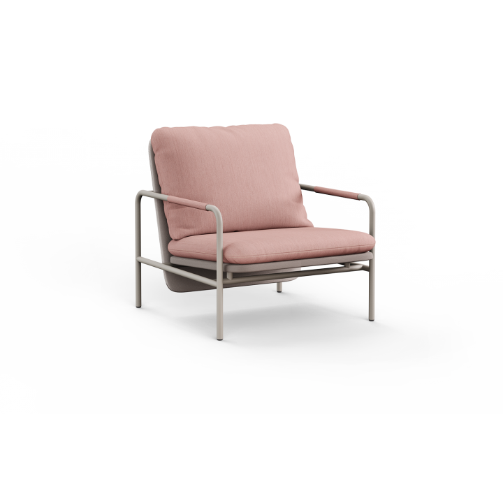 כורסת לאונג' מבית המותג B&T, אידיאלית לריהוט חוץ ופינות ישיבה חיצוניות, מתאימה גם לאזורי לאונג' והמתנה. הבסיס עשוי מאלומיניום וזמין במבחר גוונים. הריפודים מוצעים במבחר צבעים והדפסים. הסדרה כוללת ספת לאונג'.