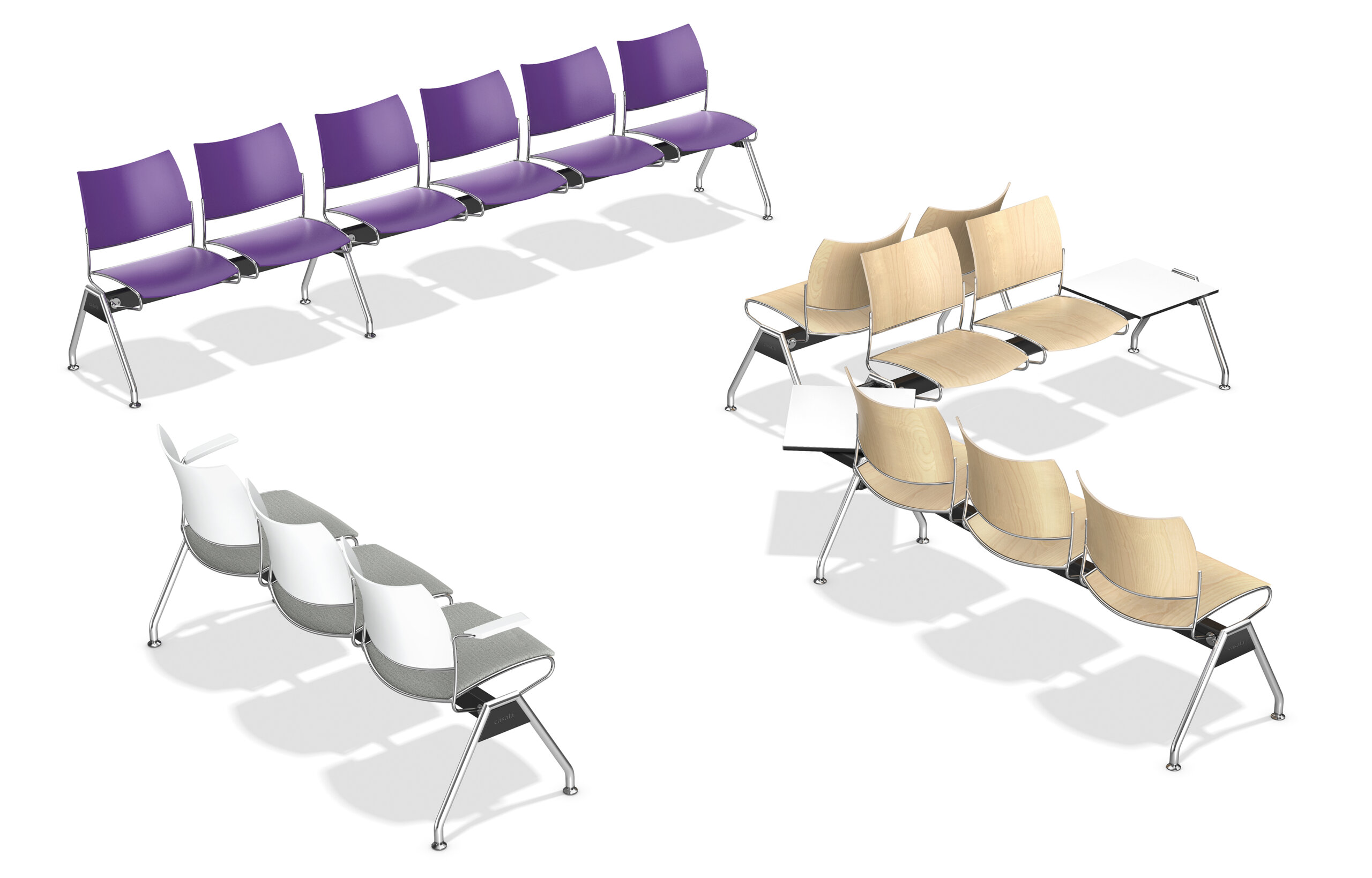 ספסל מודולרי מבית המותג Casala, מתאים למרחבים ציבוריים וחדרי המתנה. ניתן להתאים את הספסל לכמות המושבים הרצויה, לחבר שולחן צד ואף ליצור ספסל פינתי. המושבים זמינים בפלסטיק או עץ בגוונים שונים. הסדרה כוללת כיסא סטודנט.