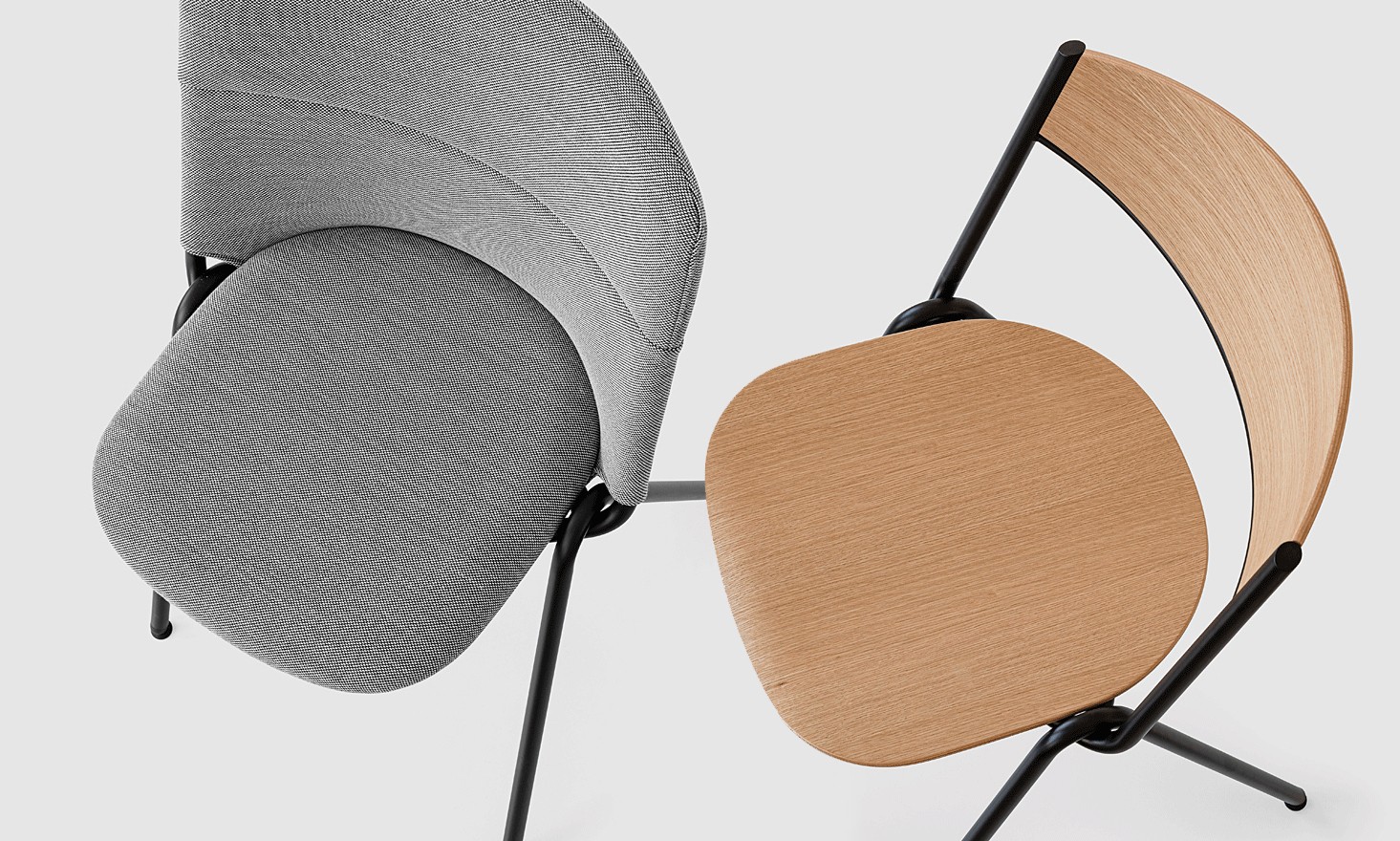 כיסא מבית המותג Noti, מתאים לאזורי הסעדה ומרחבים משותפים. הכיסא משלב עץ אלון בגוון טבעי ושחור עם אלמנט מבני ייחודי בצורת קשר של צינורות מעוקלים. ניתן לרפד את הכיסא בבדים בטקסטורות שונות במגוון צבעים. הדגם הלא-מרופד ניתן לערימה.