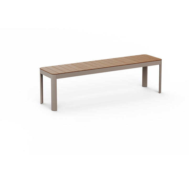 ספסל מבית המותג B&T, מיועד לאזורי הסעדה ומותאם גם לאזורים חיצוניים. הרגליים עשויות מאלומיניום בגוונים שונים. המשטח זמין בגימורי קרמיקה ועץ אירוקו שעמיד לתנאי חוץ. הסדרה כוללת שולחן הסעדה ושולחן קפה.