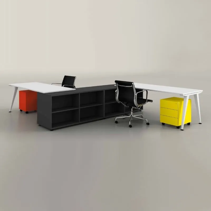 שולחן משרדי מבית המותג Raio, מתאים למרחבים משותפים. השולחן זמין במבחר צורות וגדלים בהתאמה אישית. המשטח מגיע בגימורים משתנים בשלל גוונים. הסדרה כוללת דלפק קבלה, עמדת עבודה ושולחן מנהלים.