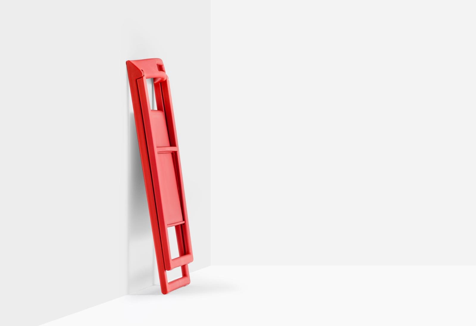 כיסא מתקפל מבית המותג Pedrali, מתאים למרחבים חיצוניים, מרפסות ואזורי הסעדה. הכיסא עשוי מיציקת פוליפרופילן מחוזק בפיברגלאס – חומר עמיד בפני קרני UV. הפריט זמין בשחור, לבן ואדום. ניתן להוסיף עגלה ייעודית עם או בלי גלגלים.