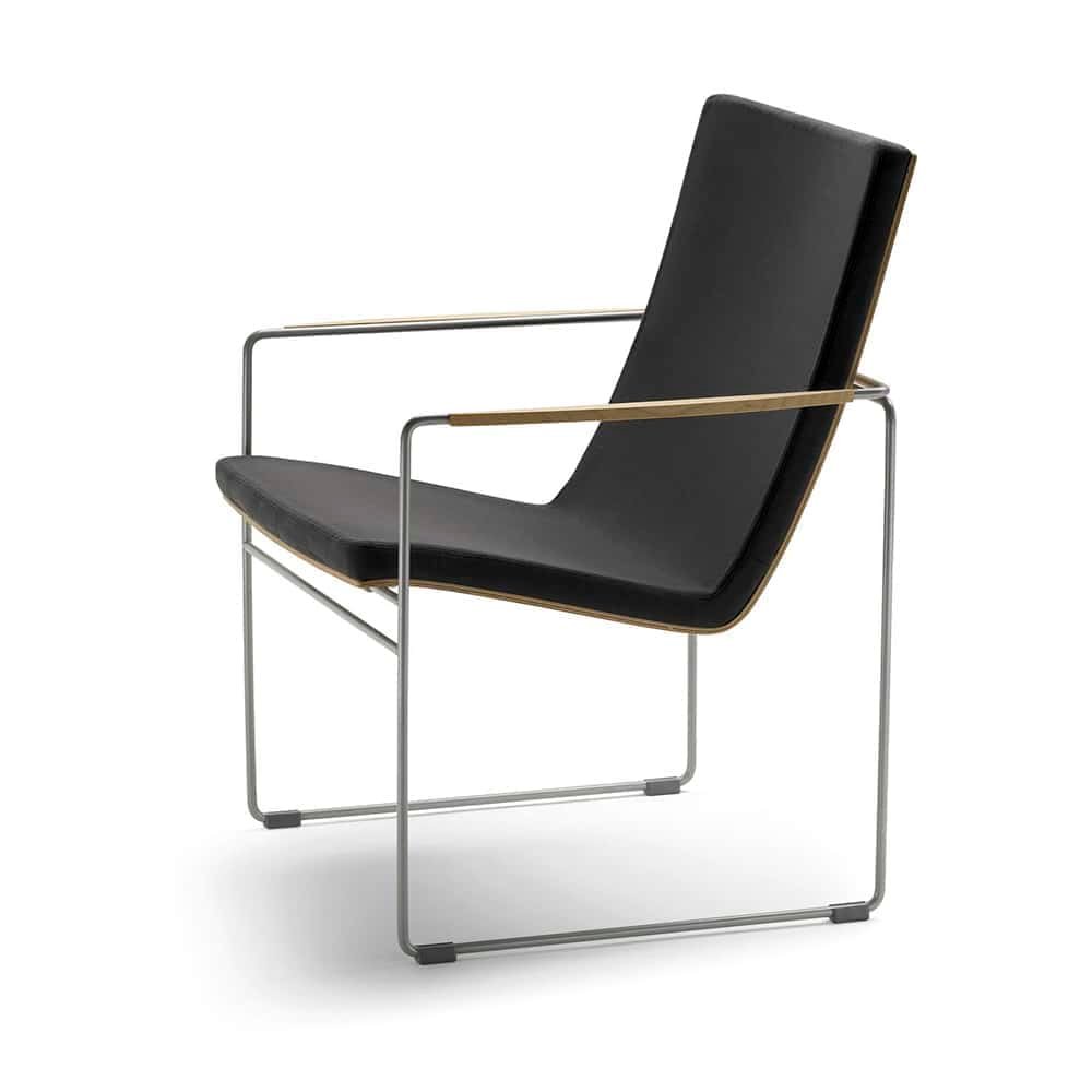 כורסת לאונג' מבית המותג Sellex, מתאימה לסביבות אירוח, אזורי המתנה ולובאים. הכורסה עשויה מעץ מכופף ועליו ריפוד דמוי עור במגוון צבעים, המסגרת מנירוסטה דקה. הסדרה כוללת כיסא אורח.
