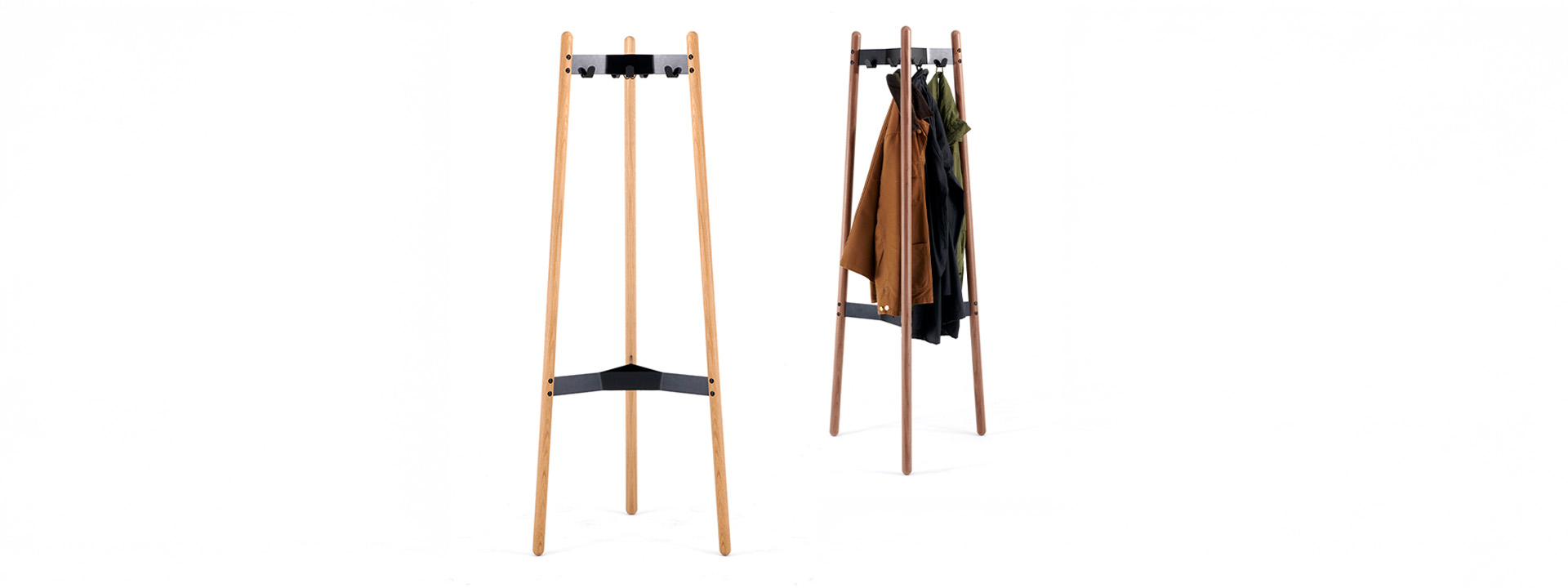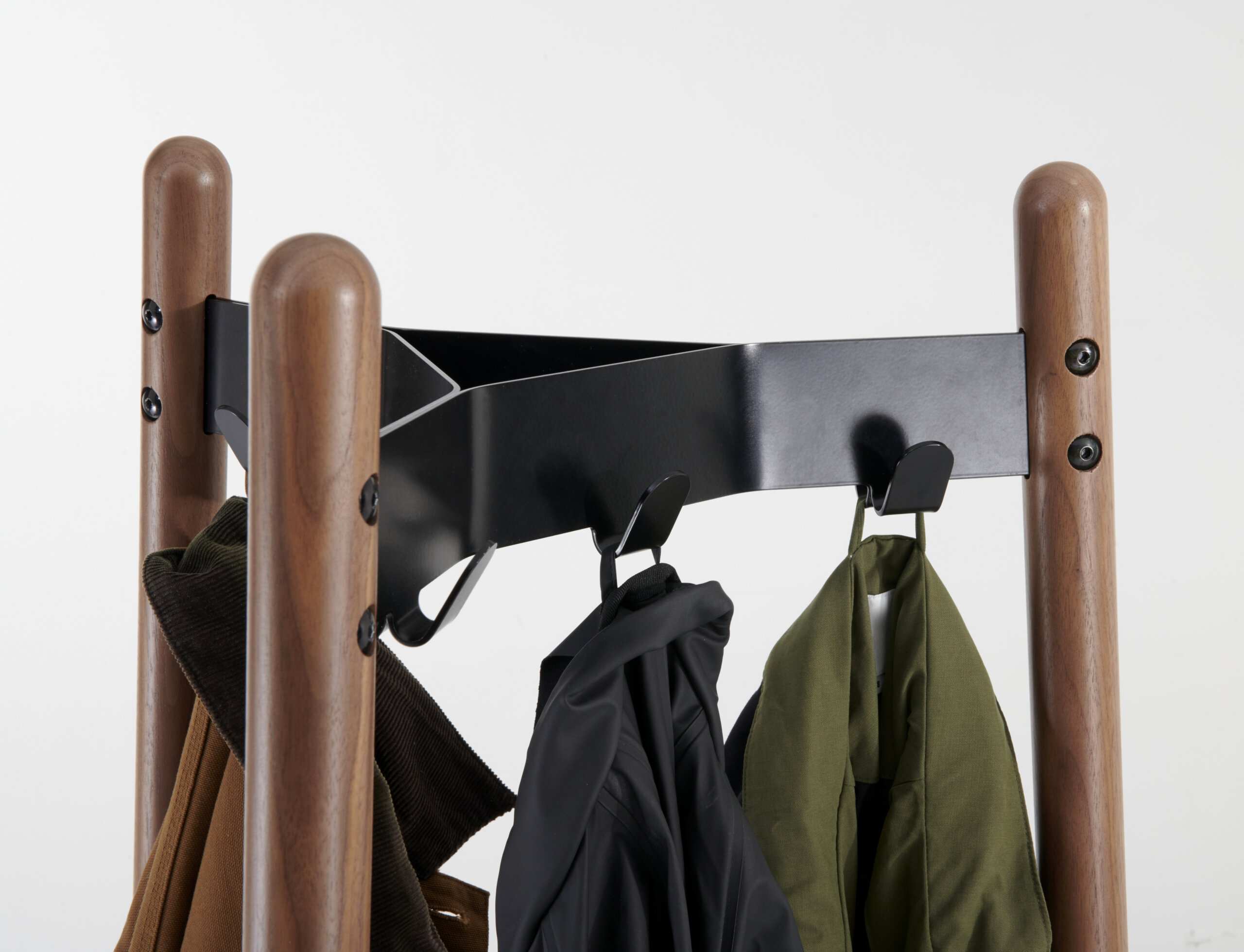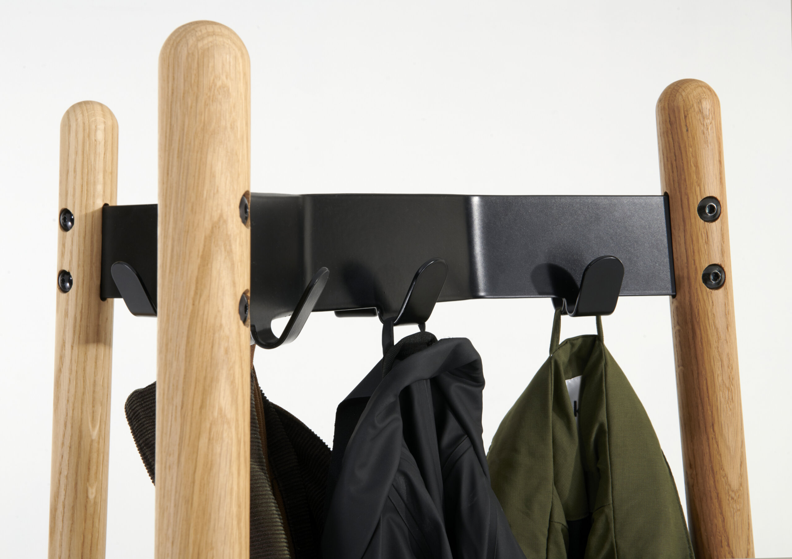 מתלה מעילים מבית המותג NaughtOne, משתייך לקולקטיב המותגים MillerKnoll. מתאים לסביבות משרדיות, אזורי אירוח והמתנה. המתלה עשוי מרגלי עץ מלא (ניתן לבחור אלון או אגוז) ומסילות מתכת מקופלות.