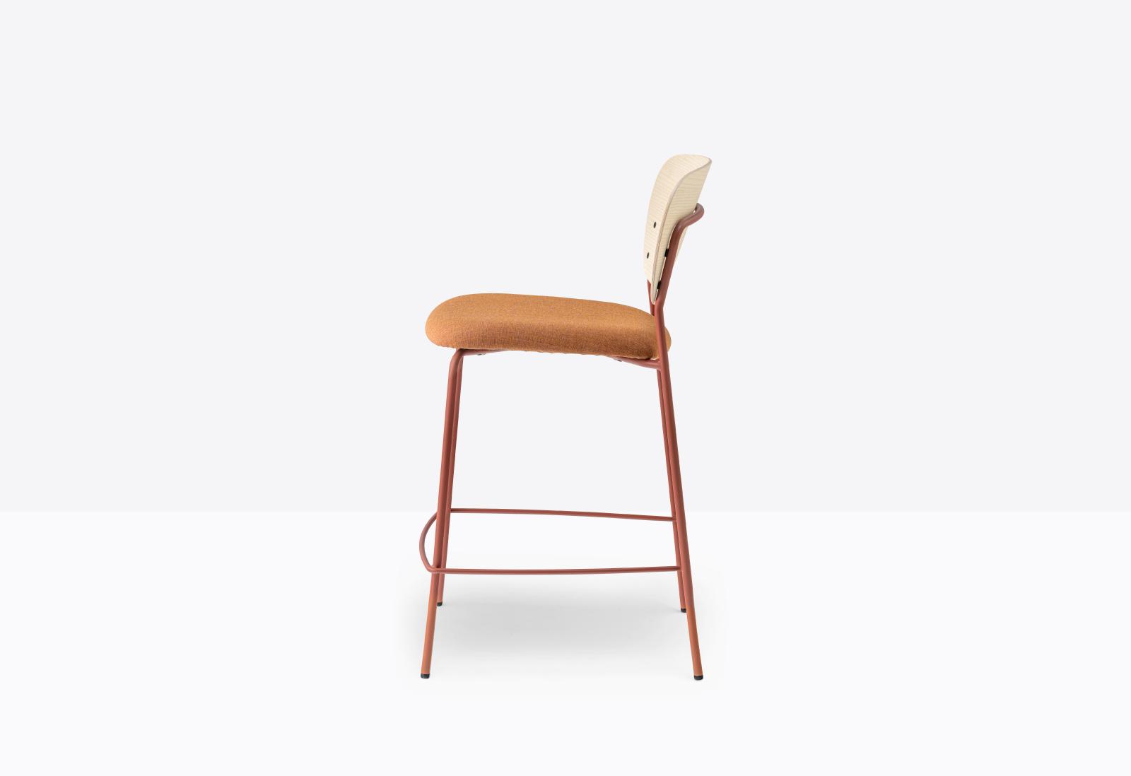 כיסא בר מבית המותג pedrali, מתאים לאזורי הסעדה ומרחבים משותפים. לכיסא משענת גב מעץ או מרופדת ובסיס במבנה פלדה קליל, שיוצר תחושת ריחוף עדינה. הכיסא מציע מגוון אפשרויות של בדים בטקסטורות שונות בשילוב מתכת במבחר צבעים. זמין בגובה בר וגובה מטבח, ניתן לערום עד שלושה כיסאות. הסדרה כוללת כיסא בר, כיסא קפיטריה וכיסא אורח.