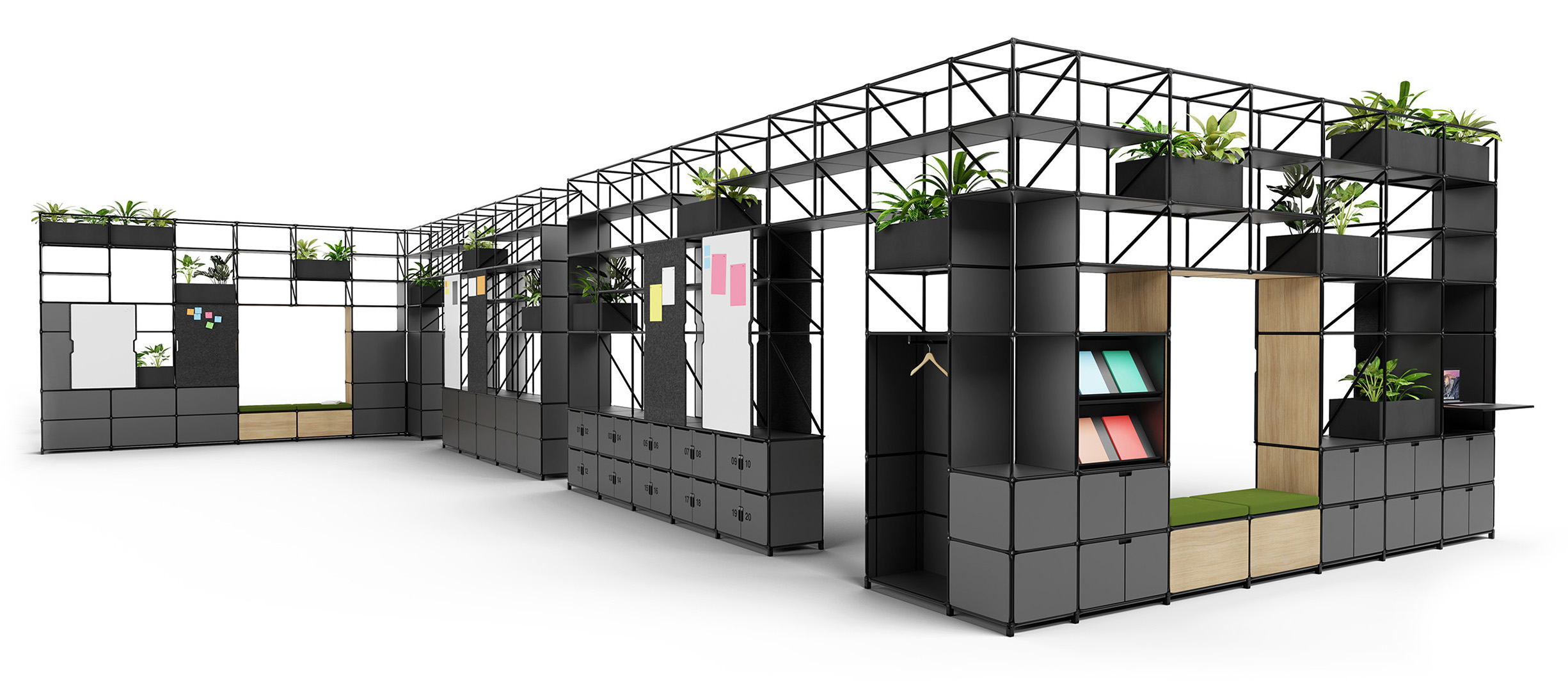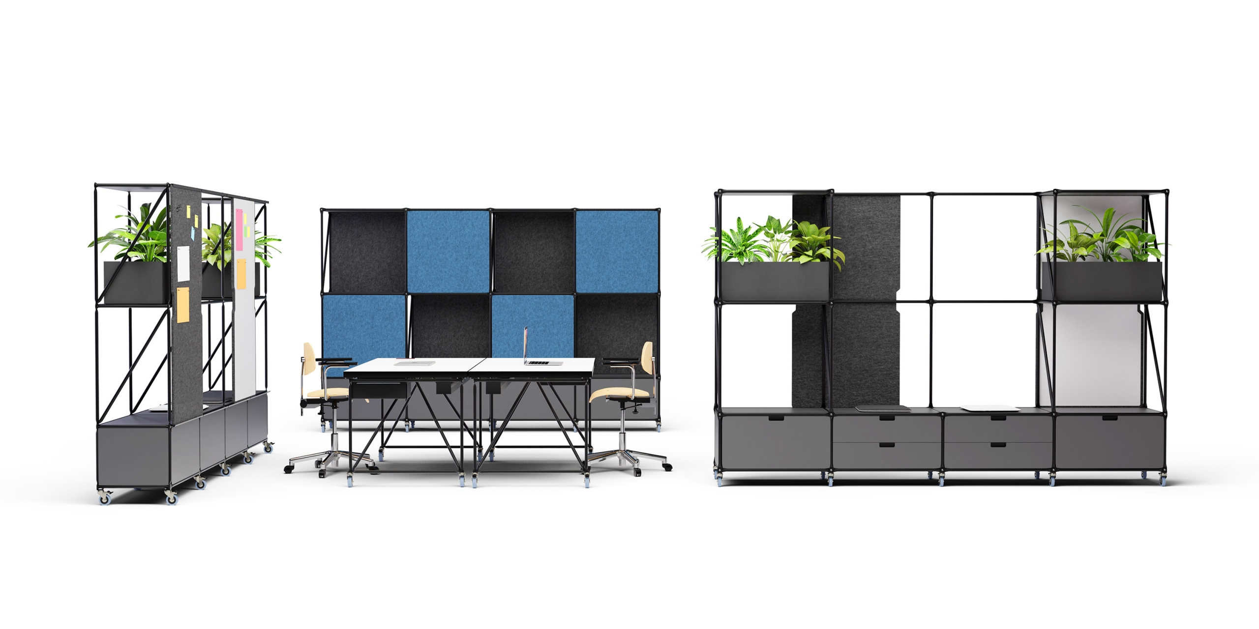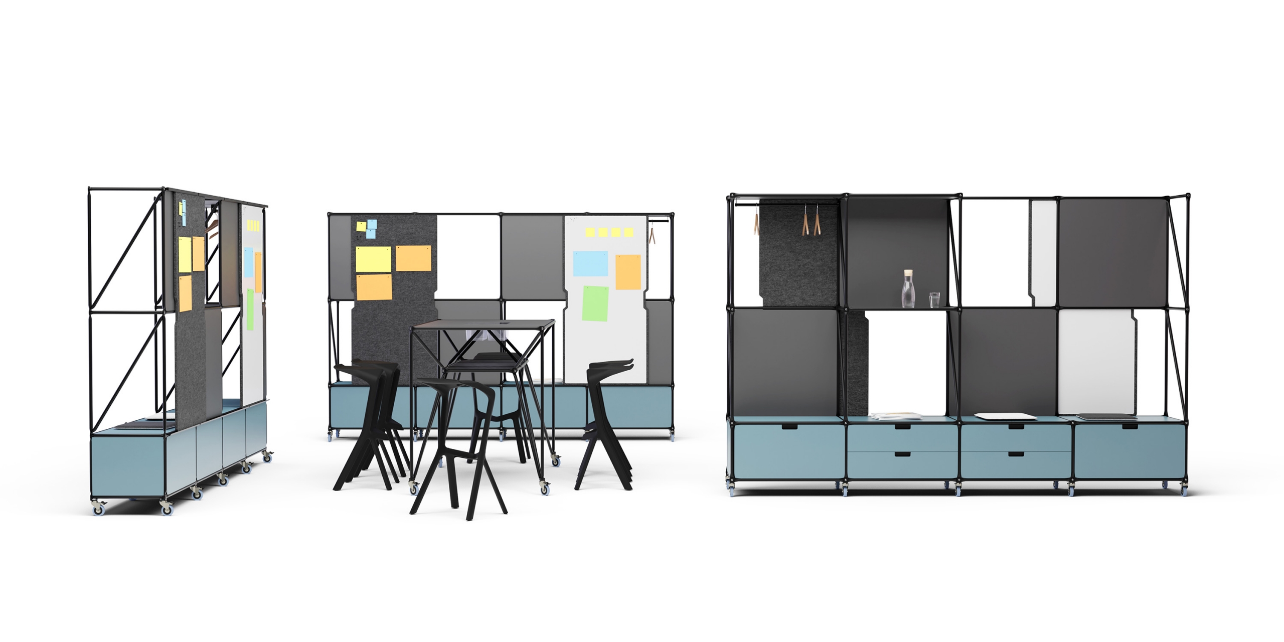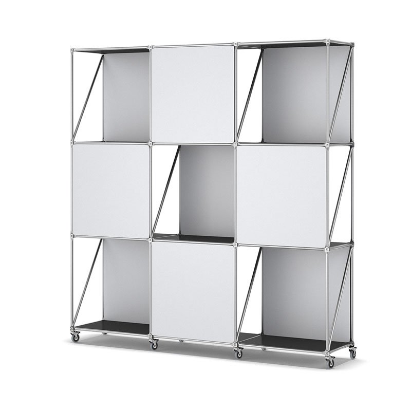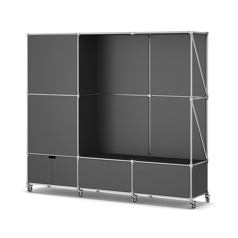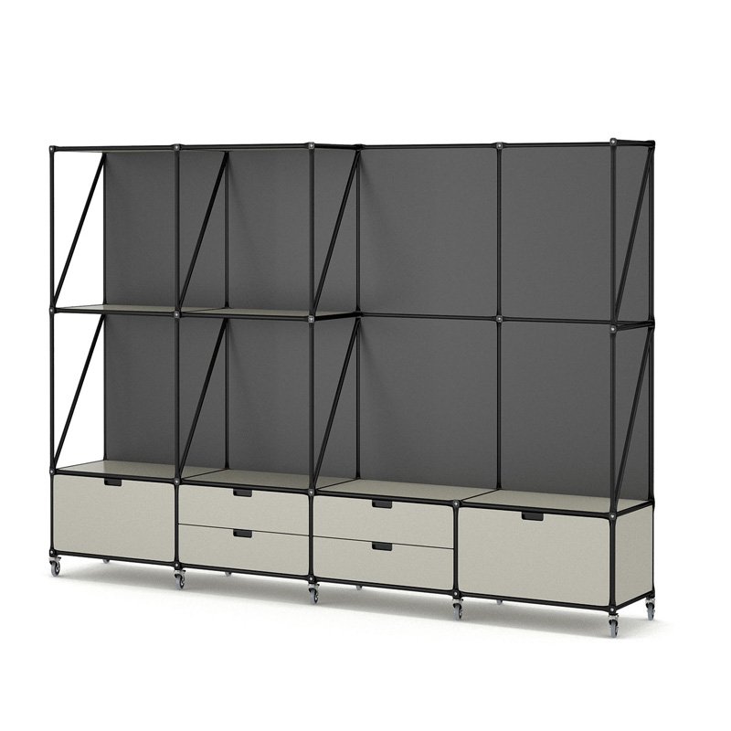 מערכת ריהוט מודולרית לאחסון מבית המותג System 180, מתאימה למרחבים משותפים ואזורי לאונג'. למערכת מגוון פתרונות אחסון: משמשת גם כספרייה עם יחידת ארונות ומגירות וגם כמחיצת הפרדה בין אזורי עבודה. לפריט ישנם גלגלים שמאפשרים הזזה בקלות ממקום למקום.