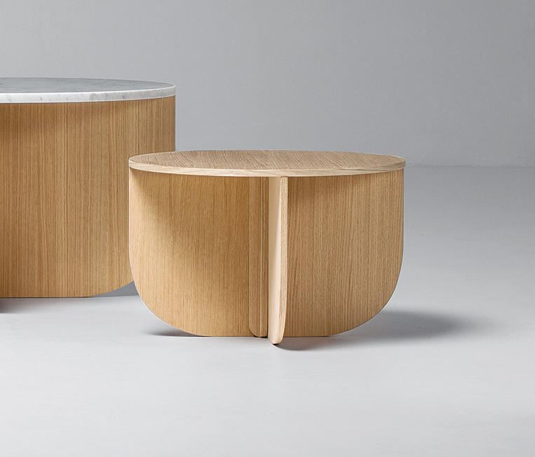 שולחן קפה עגול מבית המותג La Cividina, מתאים לאזורי לאונג', אזורי המתנה, קבלה ולובאים. בסיס השולחן עשוי מעץ אלון בגוונים שונים, המשטח זמין בעץ, שיש או זכוכית. השולחן מגיע בשלושה גדלים וגבהים שונים שניתן לשלב זה לצד זה.