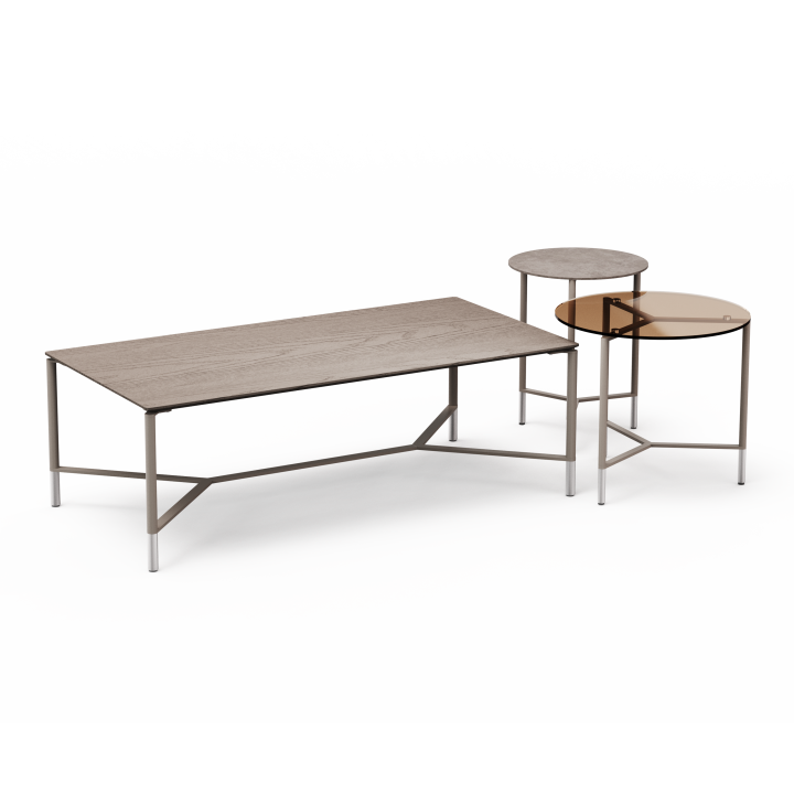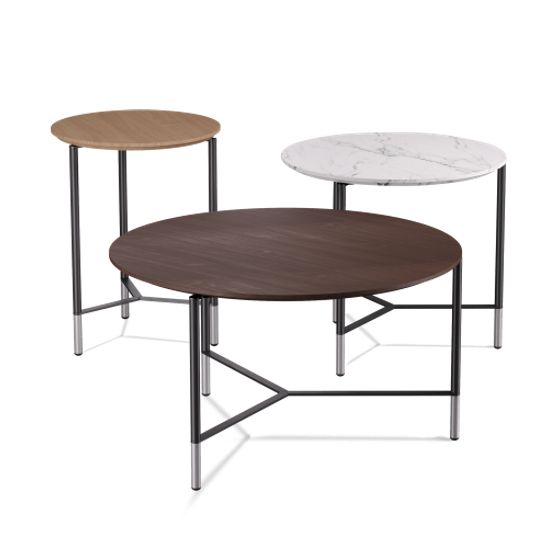 שולחן קפה מבית המותג B&T, מתאים לאזורי לאונג', אזורי המתנה ולובאים. השולחן זמין במבחר גבהים, גדלים וצורות הניתנים לשילוב. הרגליים עשויות מתכת, המשטחים זמינים בגימורים משתנים.