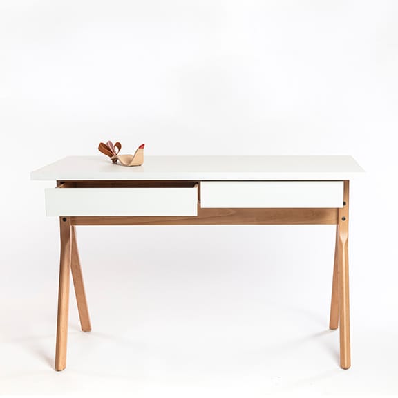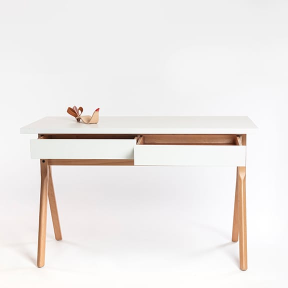 שולחן עבודה בייצור נגריית האומן של פיטרו. בסיס השולחן עשוי מעץ בוק בטכנולוגיית כבישה צורנית, הפלטה וחזית המגירות עשויות מלמין לבן. שימו לב, לא ניתן לבצע איסוף עצמי למוצרים מורכבים אשר דורשים התקנה. לא ניתן לרכוש את הבסיס ללא הפלטה (רק מוצר שלם).
