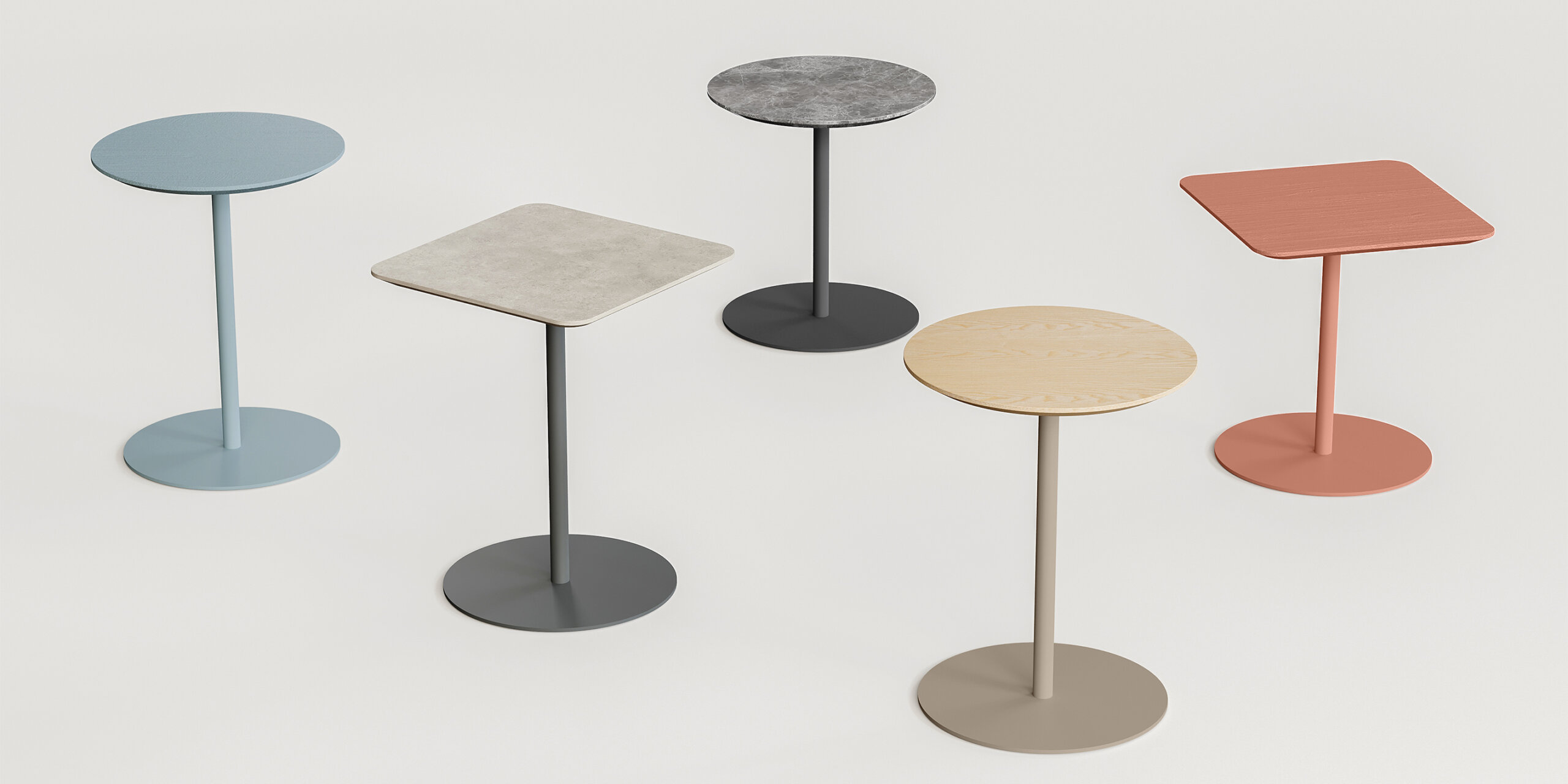שולחן קפה וצד מבית המותג B&T, מתאים לסביבות אירוח ואזורי לאונג'. לפריט משטח עץ במבחר סוגים בגוונים שונים ורגל ממתכת עם בסיס עגול בשלל צבעים. זמין במספר גבהים שניתן להעמיד אחד לצד השני.