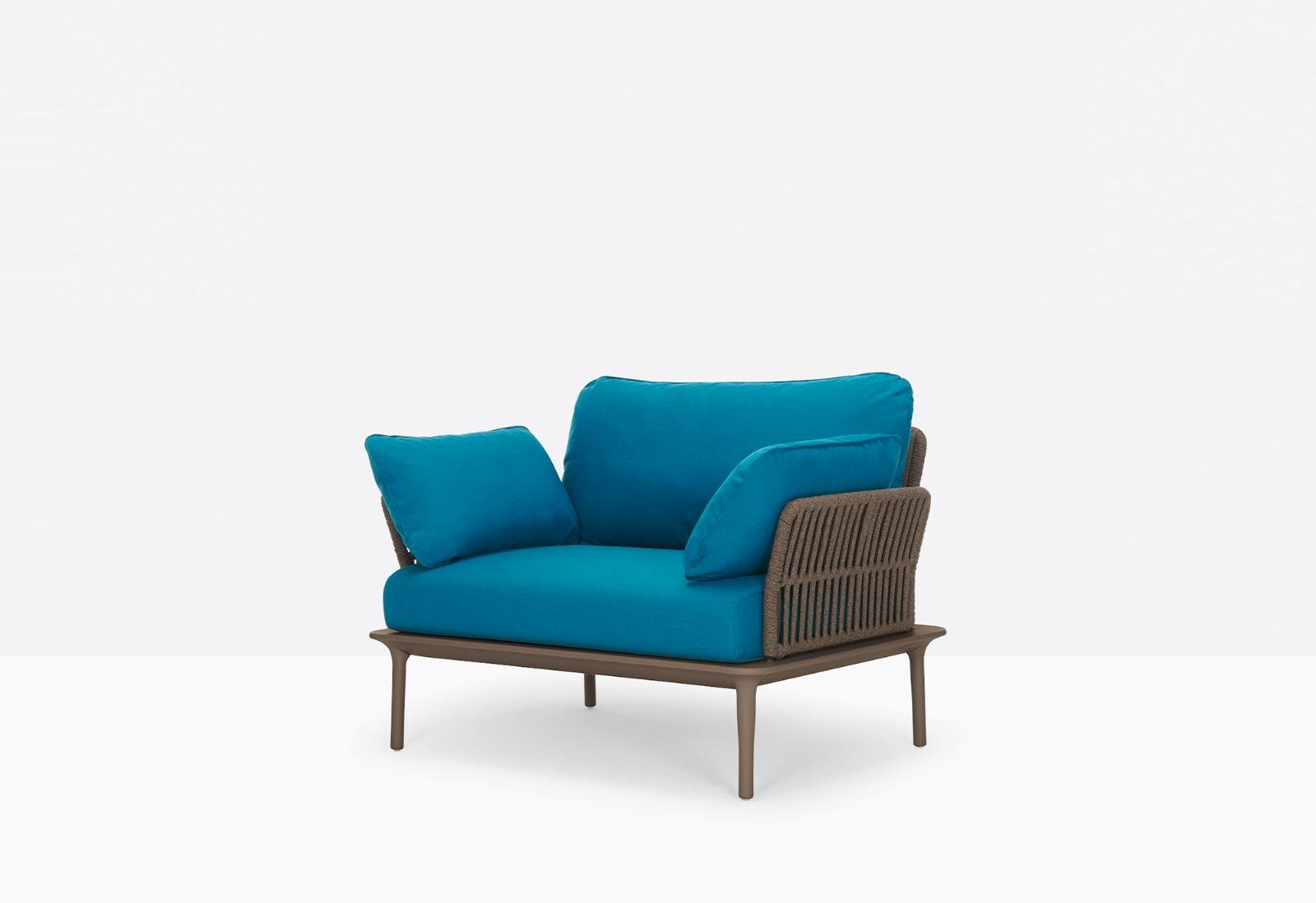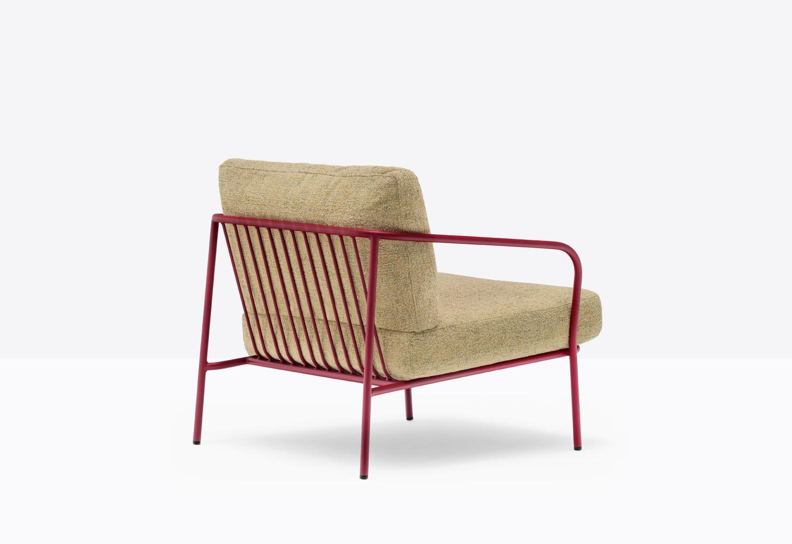 כורסת לאונג' מבית המותג pedrali, מתאימה לסביבות אירוח חיצוניות ומרפסות. הכורסה עשויה פלדה צבועה שעמידה בפני תנאי מזג האוויר ובדים דוחי מים שמותאמים לחוץ. הסדרה כוללת כיסא בר, כיסא קפיטריה ושולחן קפה.