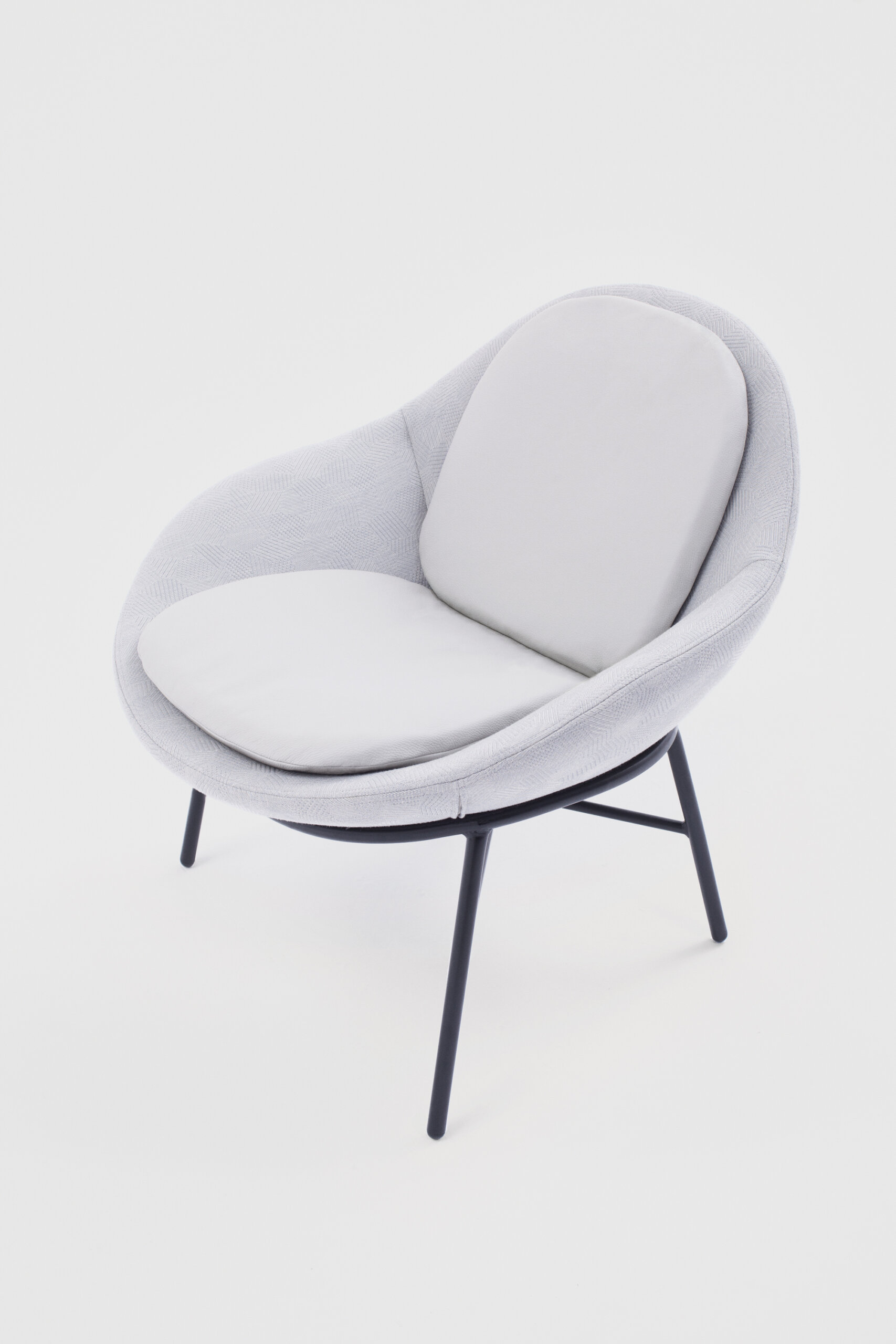 כורסת לאונג' מבית המותג Comforty, מתאימה לסביבות אירוח, אזורי לאונג' ולובאים. לכורסה עיצוב השואב השראה מצדפה. בסיס מתכתי בצורות שונות, ניתן להזמין את הריפוד והמושבים בגרסה רכה או קשיחה. מגוון בדים, צבעים והדפסים.