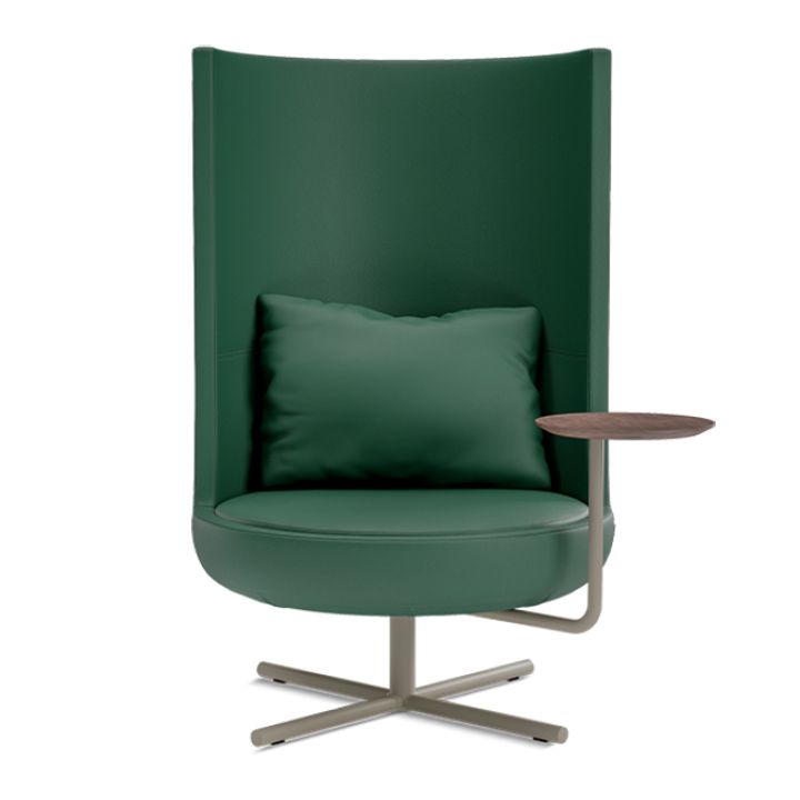 כורסת לאונג' מבית המותג B&T, מתאימה לסביבות אירוח, אזורי לאונג' ולובאים. לכורסה משענת גב רגילה או משענת גבוהה שמעניקה פרטיות ותמיכה לגוף. מספר בסיסים בגימורים משתנים. לפריט מגוון בדים בטקסטורות שונות בשלל צבעים, אופציה להוספת שולחן צד.