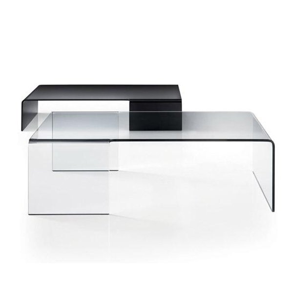שולחן קפה מבית המותג Sovet, מתאים לסביבות אירוח, אזורי לאונג' ולובאים. השולחן עשוי מזכוכית מכופפת במקשה אחת. זמין במספר גדלים. הזכוכית מגיעה במגוון צבעים ובדרגות שקיפות משתנות.