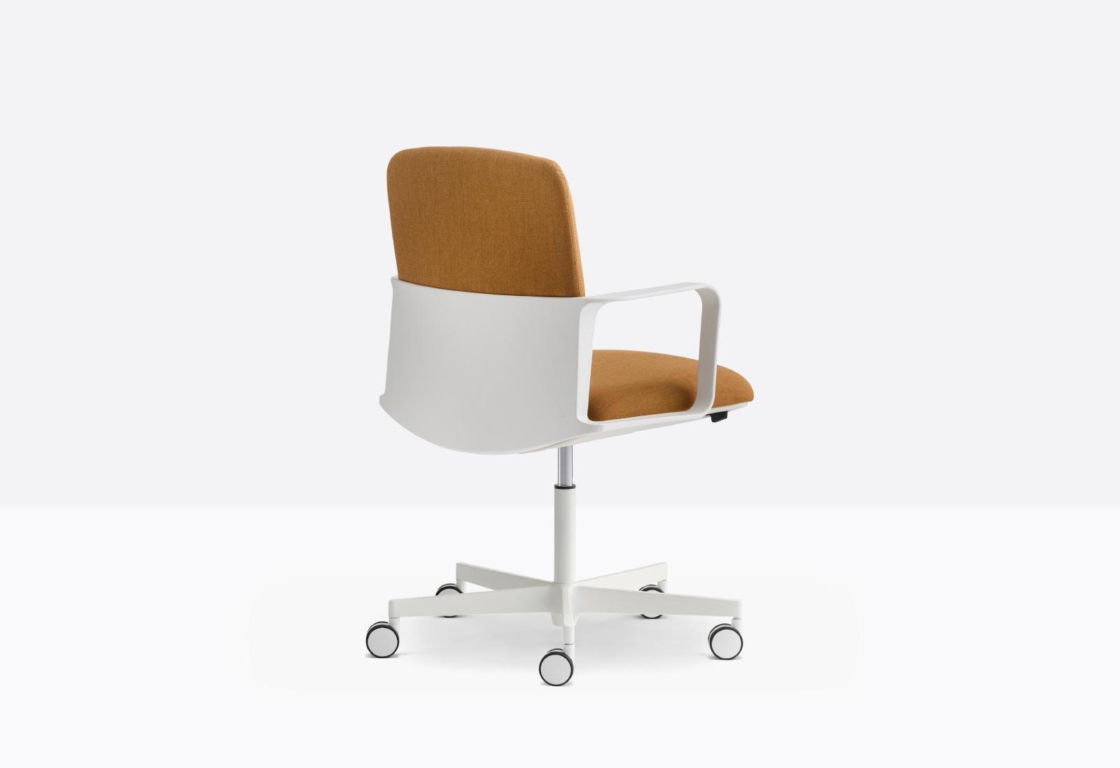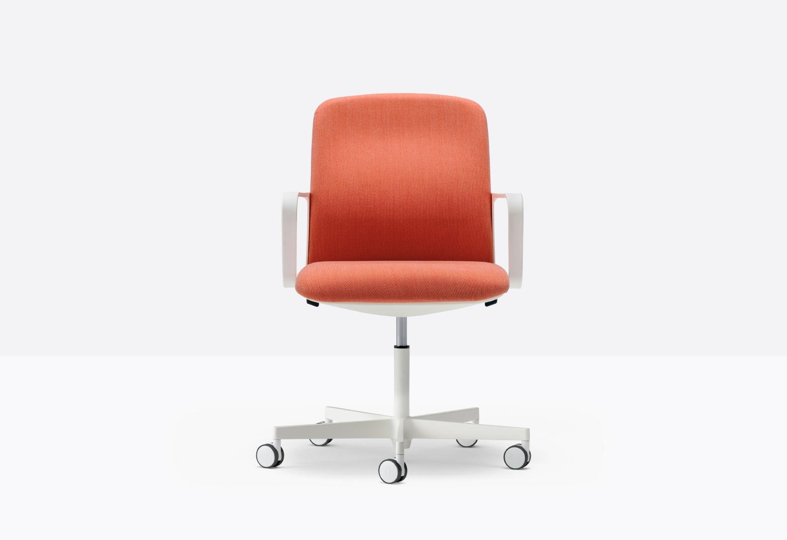 כיסא לחדר ישיבות מבית המותג pedrali, מתאים למרחבים משותפים. הכיסא משלב בין טכנולוגיה ארגונומית לעיצוב אלגנטי, כולל מנגנון הטיה סינכרוני וחכם המגיב למשקל המשתמש ומבטיח נוחות מירבית. בעל ידית להתאמת גובה הישיבה. הכיסא זמין בשחור ולבן, הריפוד מגיע במגוון בדים בטקסטורות שונות ושלל צבעים.
