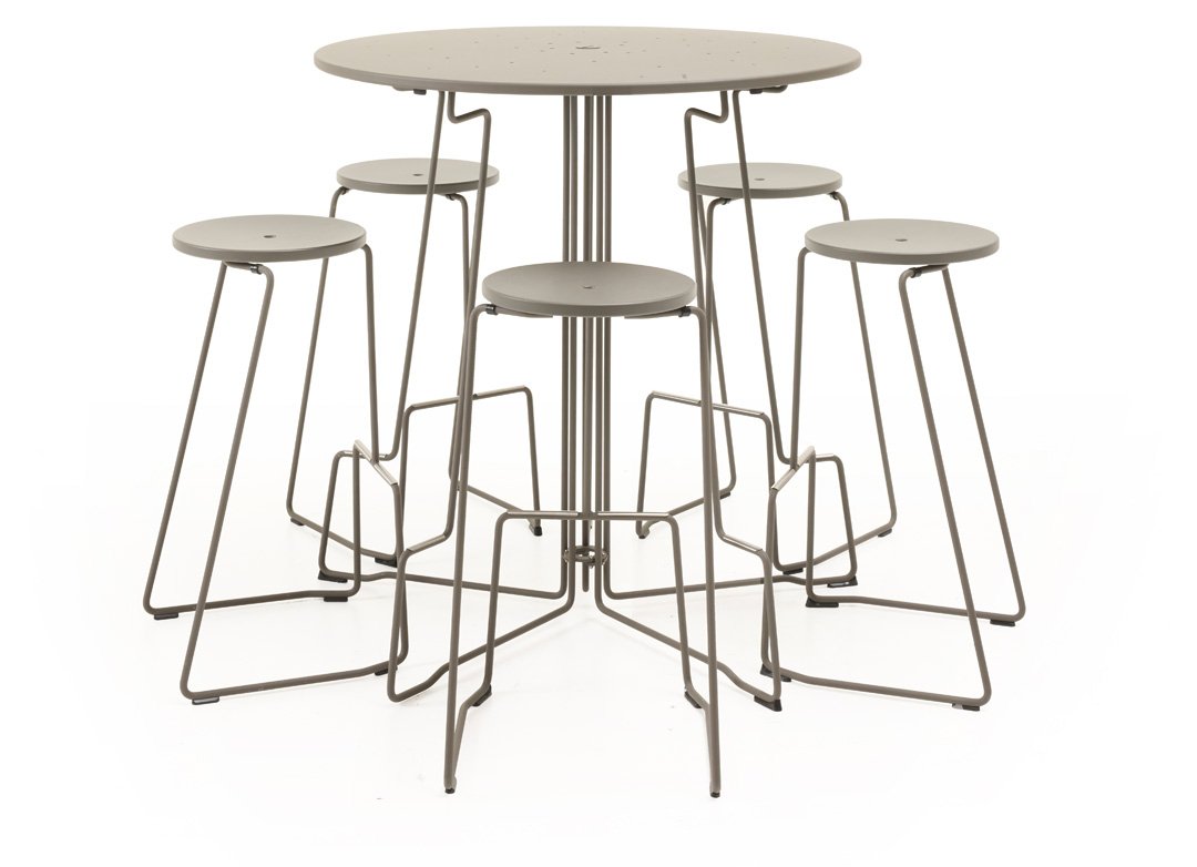 שולחן בר מבית המותג Extremis, מתאים למרחבי עבודה חיצוניים, מוסדות ציבוריים ובתי מלון. השולחן זמין בשני גדלים (שלושה עד חמישה אנשים), ניתן להוסיף גגון עם חיבור במרכז השולחן. קל לקיפול ונוח לאחסון, מגיע במבחר צבעים. הסדרה כוללת כיסא בר תואם.