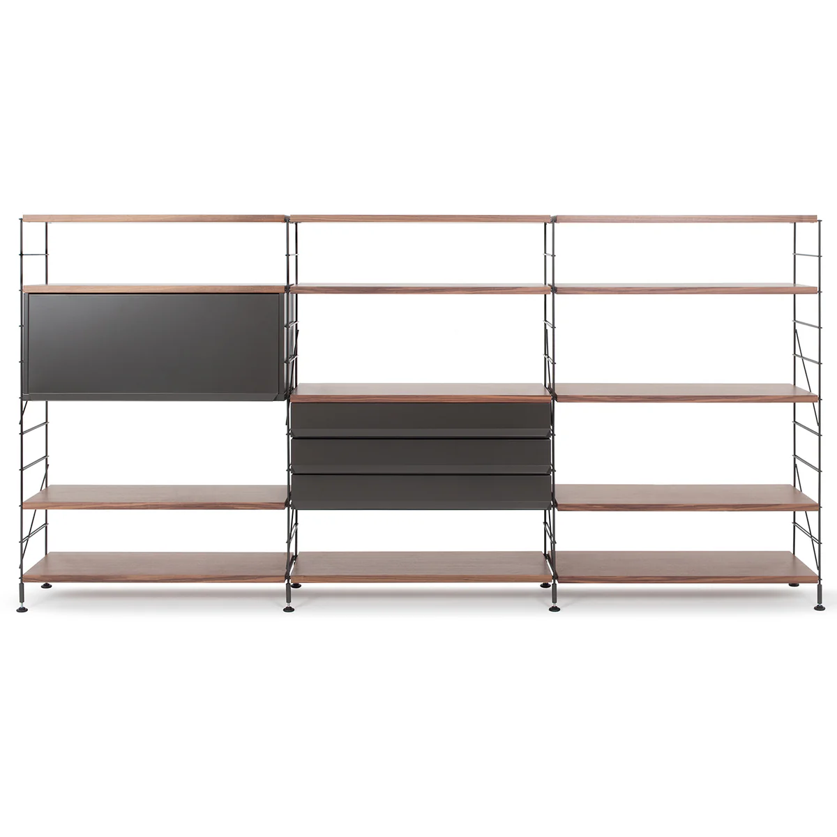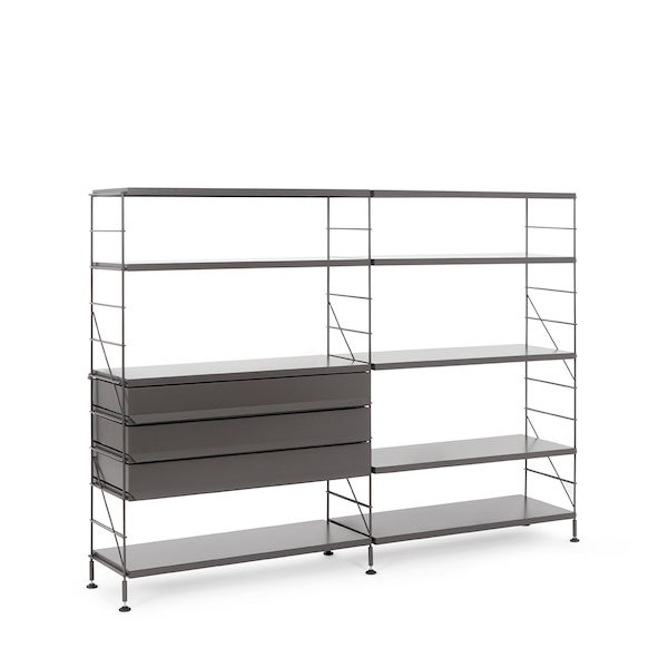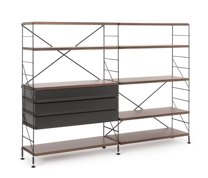 יחידת מדפים מודולרית מבית המותג Mobles114, מתאימה למרחבים משותפים. עוצבה לראשונה ב-1978, משלבת בין עץ ומתכת. היחידה זמינה בגדלים שונים וניתנת להתאמה אישית מלאה: מדפים, מגירות, תאים ועוד. אופציה לתלייה על הקיר. זמינה במגוון גימורים וצבעים.