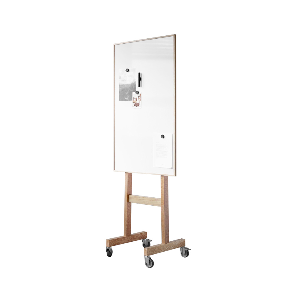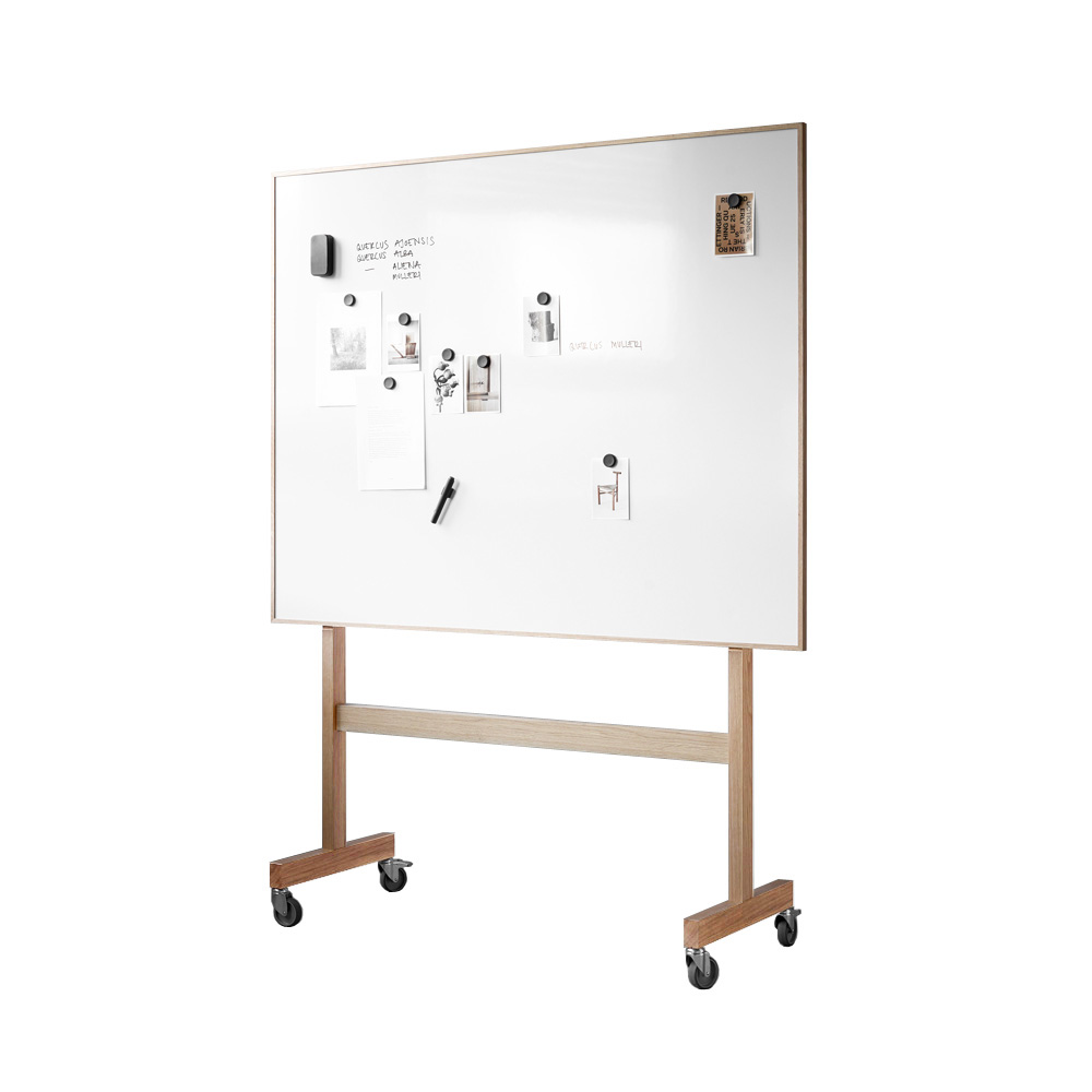 לוח כתיבה נייד מבית המותג Lintex, מתאים לאזורים משותפים, חדרי ישיבות וחדרי הרצאות. עיצוב בהשראת לוחות העץ הקלאסיים, עשוי ממשטח פלדה קרמית מגנטית ומסגרת עץ אלון מוצק. זמין בשני גדלים.