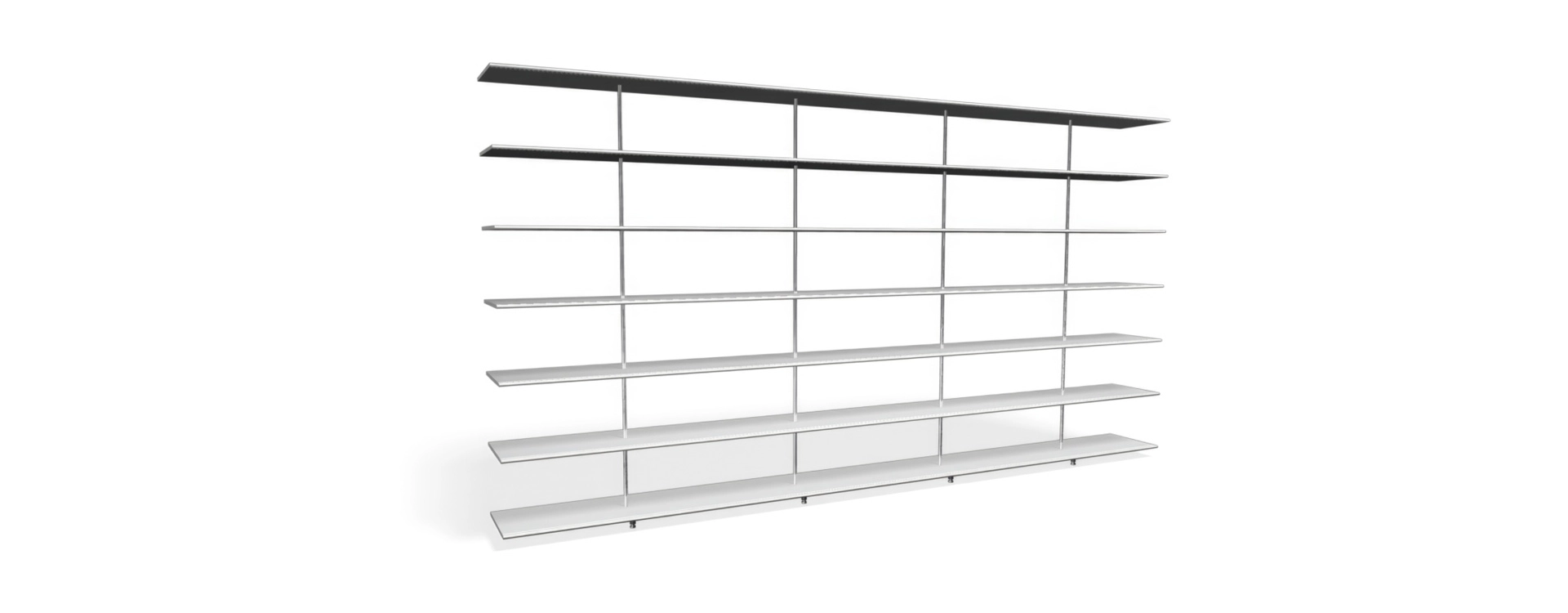 מערכת אחסון מודולרית מבית המותג Sellex, מתאימה למרחבים משותפים. למערכת מדפי אלומיניום שמחוברים באמצעות צינורות מתכת דקיקים. מגוון אפשרויות, גדלים, גימורים וגבהים לבניית המערכת: מדפים פתוחים או סגורים, דלתות הזזה או ציר, השענה על קיר או כיחידה עצמאית במרחב.