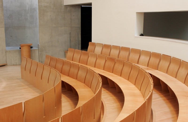 בפרויקט במכון ויצמן, המשתרע על פי 500 מ״ר, נעשה שימוש בשני סוגי מושבים המשתלבים בצורה אחידה בחלל הקיים. האדריכלים זיהו את הפוטנציאל בכסא מינימליסטי ומעוצב המתקפל לממדים דקים. זאת על מנת לייצר חלל אחיד הומוגני באמצעות חומרי גמר זהים. כך, נבחרו כסאות מתקפלים היושבים על שלדה אחת ומורכבים סביב כל היקף האולם, וכסאות ניידים. שני הכסאות זהים מבחינת הגימור שלהם אך שונים לחלוטין באפיונם – מה שעונה הן על דרישות האדריכלים והן על דרישות הלקוח. התוצאה שהתקבלה היא אולם כנסים מפואר ומעוצב להפליא, השומר על אסתטיות אחידה ונוחות מירבית.