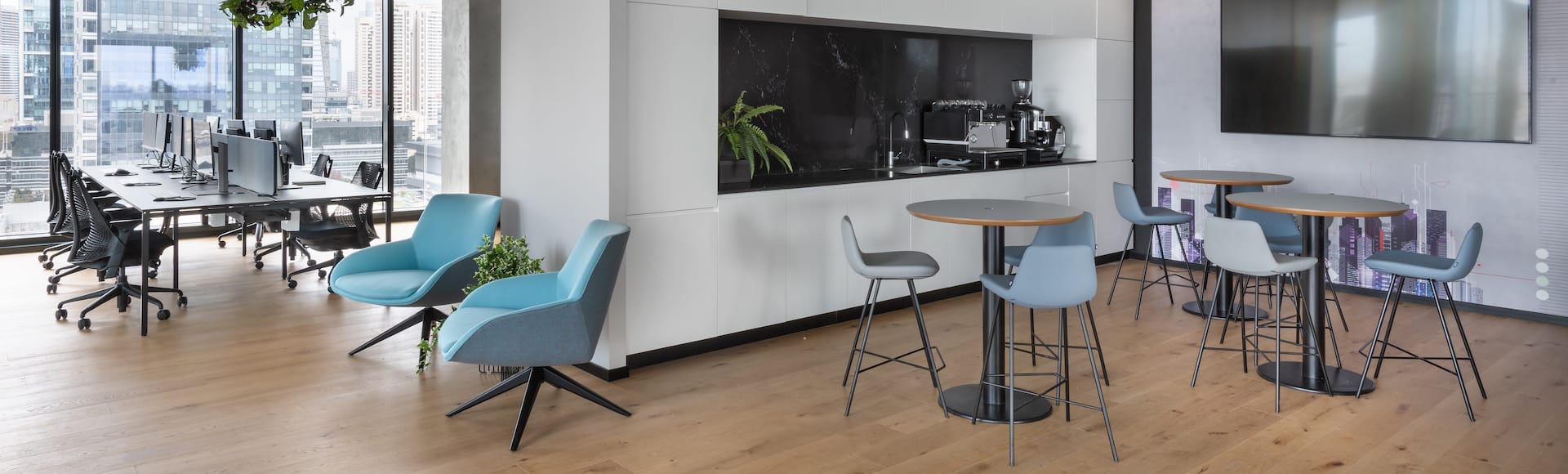 לרווחת העובדים מוקמו בכל קומה פינות קולבוריישן מגוונות עם פינות ישיבה, נדנדות, כורסאות מסאז' ועוד, אשר מחוברות למרפסת ומאפשרות מבט אל הנוף הפתוח. הקפיטריות מוקמו במרכז כל קומה, עוצבה תקרת גריד מרחפת עשויה עץ, משולבת בצמחיה וגופי תאורה. כחלק מרווחת העובדים הקומה העליונה תוכננה כקומה ציבורית המשלבת חדר כושר, כיתות למידה, חדרי יוגה ופילאטיס, חדרים מולטי פונקציונליים, חדר ישיבות גדול, חדר הדרכה, מסעדה המאפשרת מפגש של כל העובדים וקליניקה מתקדמת של רפואת שיניים לעובדים ובני משפחותיהם.