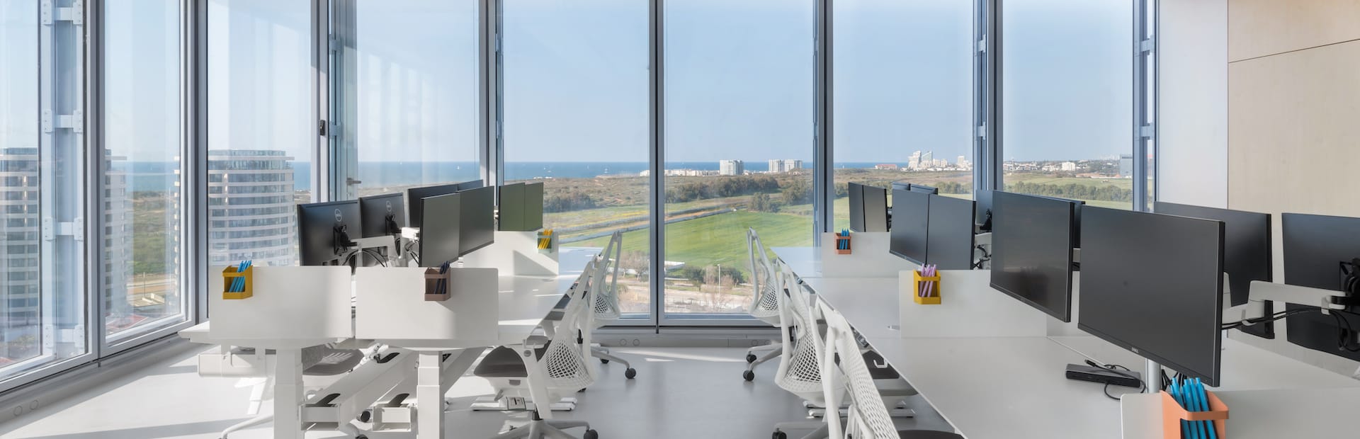 עיצוב של מרכז חדשנות ויזמות במשרדי "אמדוקס" ברעננה הציב אתגר עיצובי שדרש ייצור אזור דינאמי ועדכני בתוך חלל קיים. הקו העיצובי שנבחר התבסס על מיתוג מחדש ובחירת פרטי תאורה וריהוט עדכניים שיאפשרו אין סוף אפשרויות של סידורי ריהוט וצורות מפגש והתכנסות. הקו הותאם לדרישות של סביבת עבודה התומכת בסוגי מפגש שונים ומגוונים. ההחלטה הייתה לשלב מספר פרטי ריהוט עדכניים בצבעים ובטקסטורות שונים כדי ליצור אפשרות ל-Mix & Match, בהתאם לפעילות הרצויה ולמספר הנוכחים: ספות מרופדות, כורסאות מסתובבות, פופים מלבניים ושולחנות עגולים ניידים המאפשרים את אופן הישיבה הרצוי. פריטים מובחרים אלו מאפשרים בנוסף לאווירה החדשנית שהם משרים בחלל גם ניידות למפגשים לא פורמליים. יחד, הרהיטים יוצרים חזות שונה בצבעוניות שובבה כיאה למרכז חדשנות המציג תעוזה כערך מרכזי.