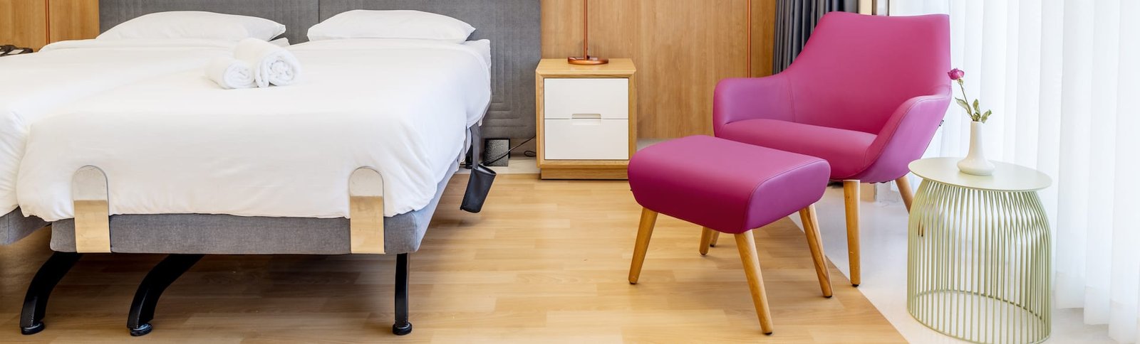 פריטי הריהוט נבחרו בקפידה עם גוונים המזמנים תחושה נעימה ואווירה מרגיעה ומבדים אנטיבקטריאלים לשימוש לאורך שנים בעלי רמת גימור גבוהה.