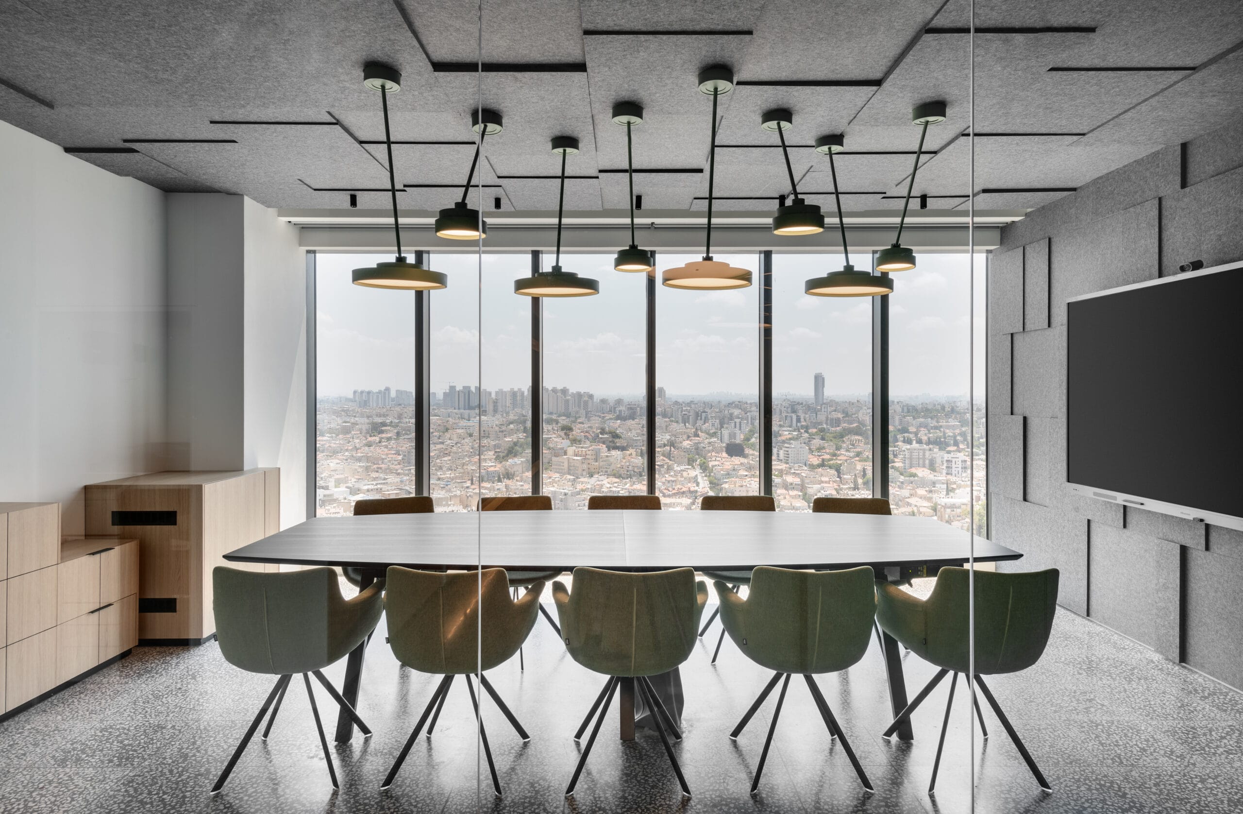 החברה הישראלית N1V, התומכת בחברות צעירות שמפתחות טכנולוגיות חדשניות, ממוקמת בקומה ה-46 במגדל מידטאון בתל אביב. משרדי החברה משתרעים על פני 400 מ״ר והם עוצבו בסגנון אורבני-תעשייתי מרשים. לחלל המרכזי נבחרו רהיטים צבעוניים המתאימים לרצפת הבטון האפורה ולחיפויי העץ: כורסאות Oyster עוטפות בצבע כתום, כורסאות נוחות של חברת Artifort בגוון ירוק יער, וכסאות בר שחורים ודקים בקרבת פינת הקפה.